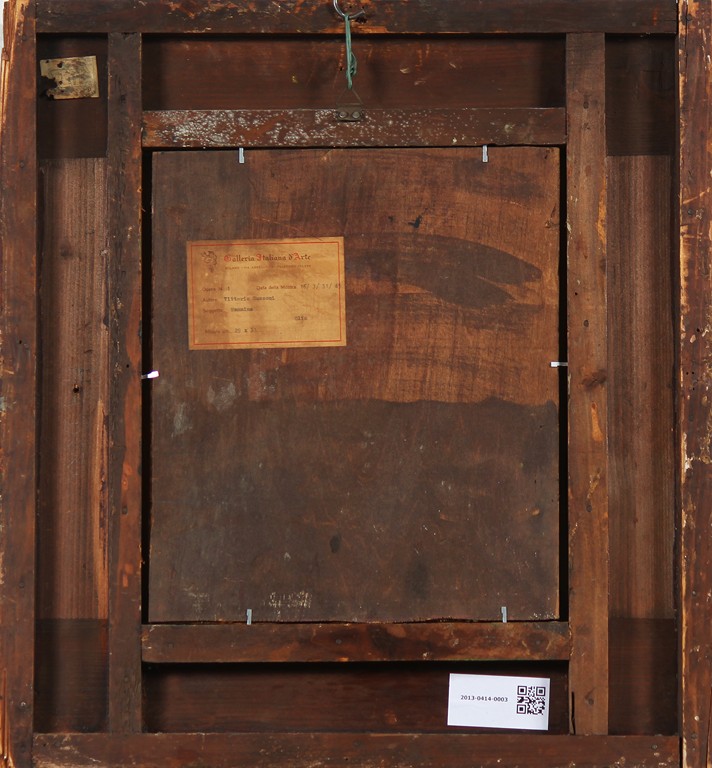 GUSSONI VITTORIO (1893 - 1968) Mammina. Olio su tavola. Cm 29,00 x 33,50. Firma in basso a sinistra. Al retro cartiglio descrittivo a cura della Galleria Italiana d'Arte, Milano. Cornice presente