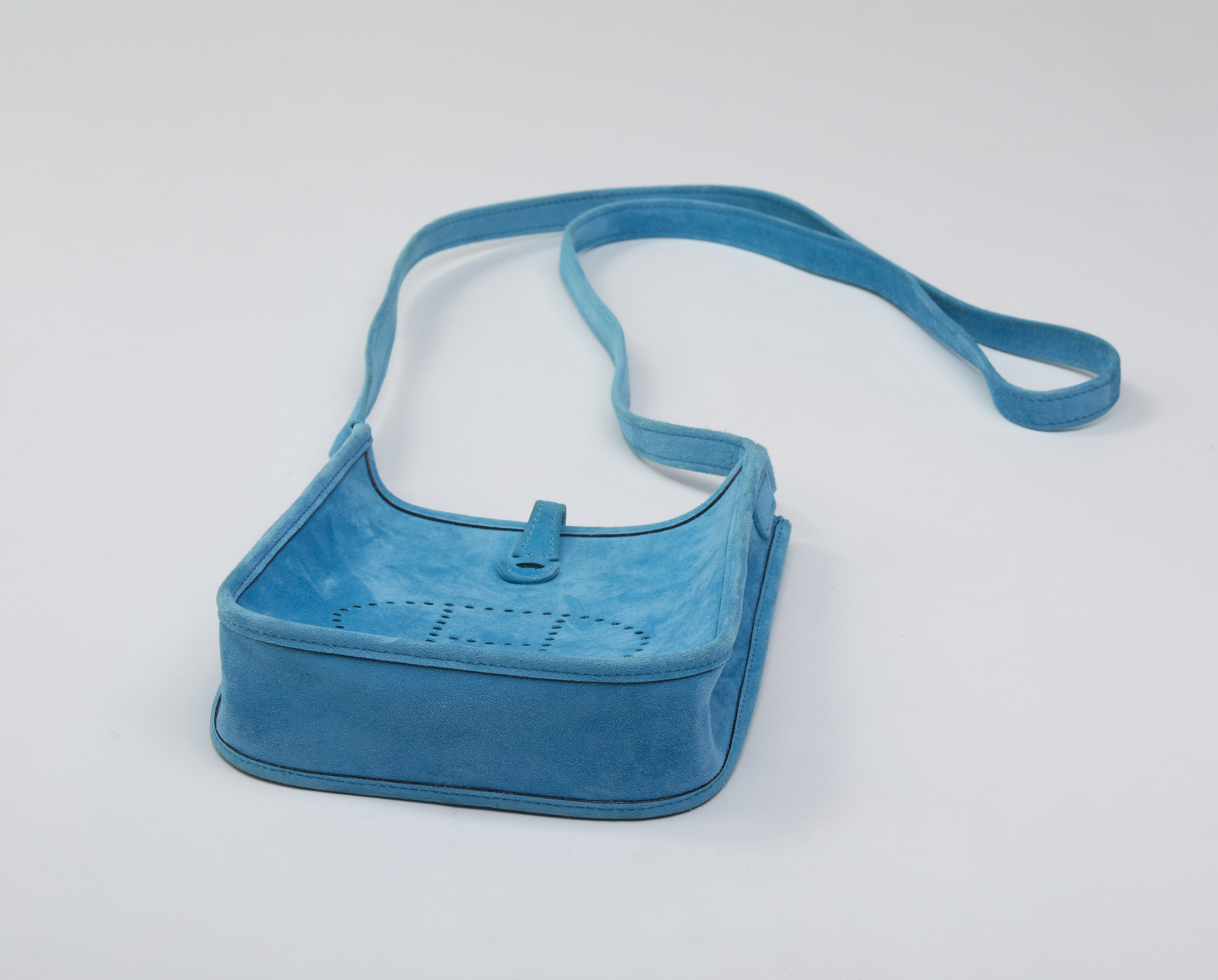 HERMES - Borsa a spalla modello Evelyne in pelle scamosciata azzurra.