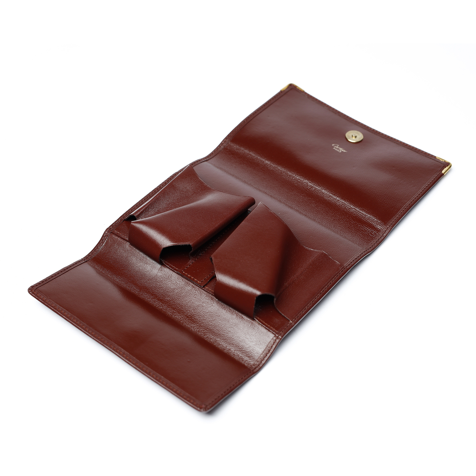 CARTIER Portacarte Les Must de Cartier. Pelle. Cm 15,50 x 11,50 x 2,50. Porta carte in pelle con salva angoli in hardware dorato, logo frontale impresso, apertura a calamita. Internamente logo Cartier Paris. Due tasche porta carte. Certificato di autenticità presente.