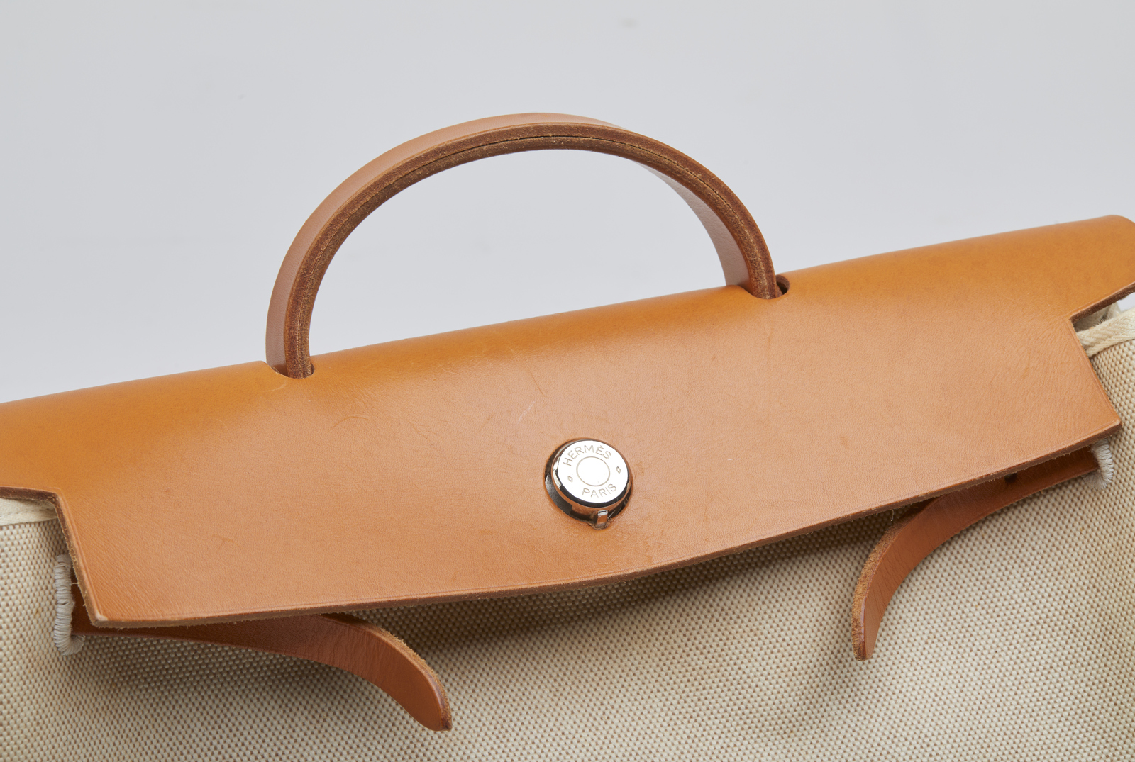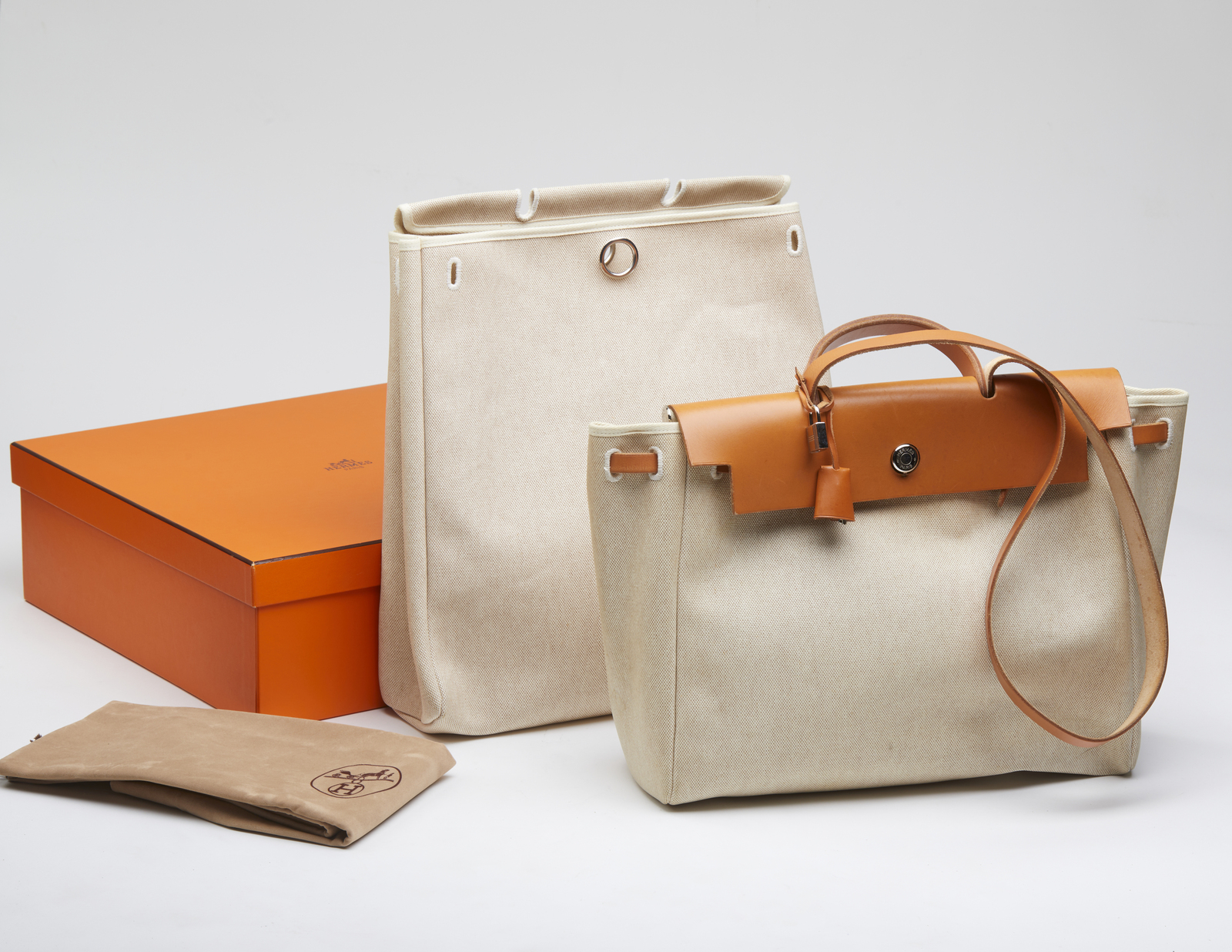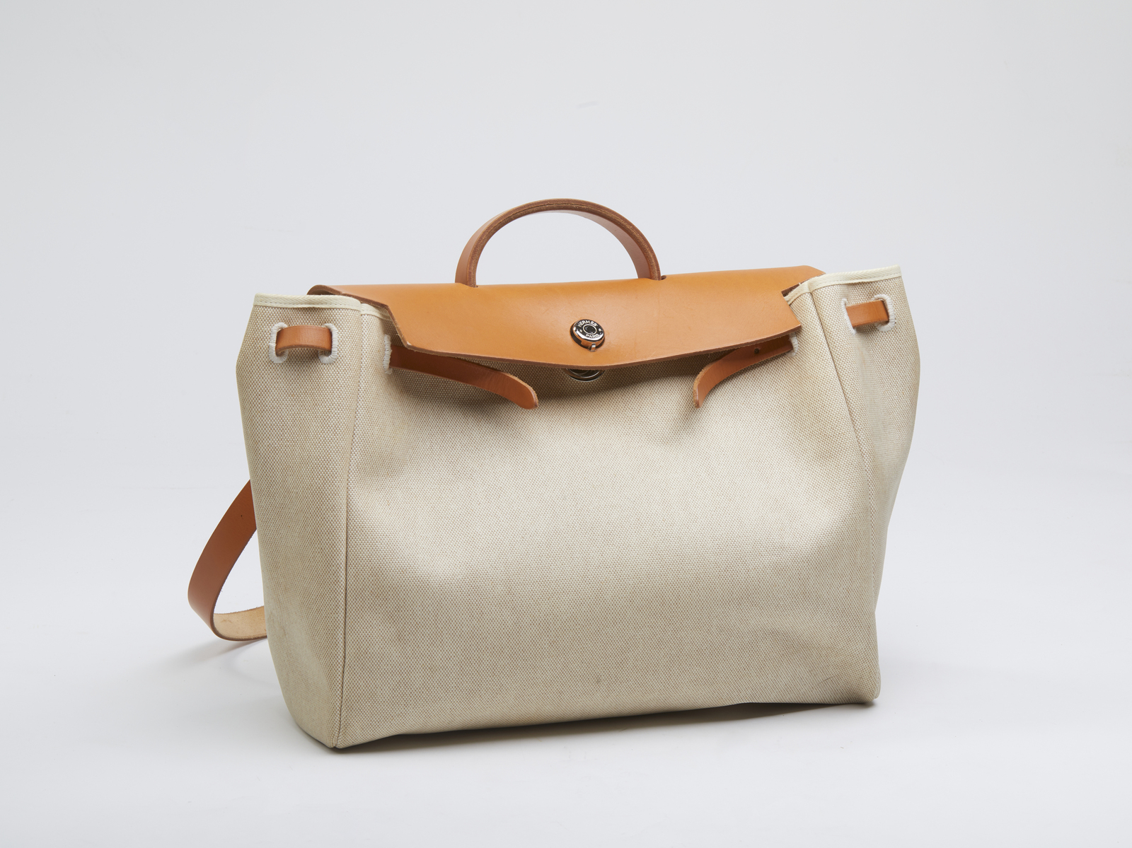 HERMES - Borsa Herbag, a tracolla in pelle e tessuto. .