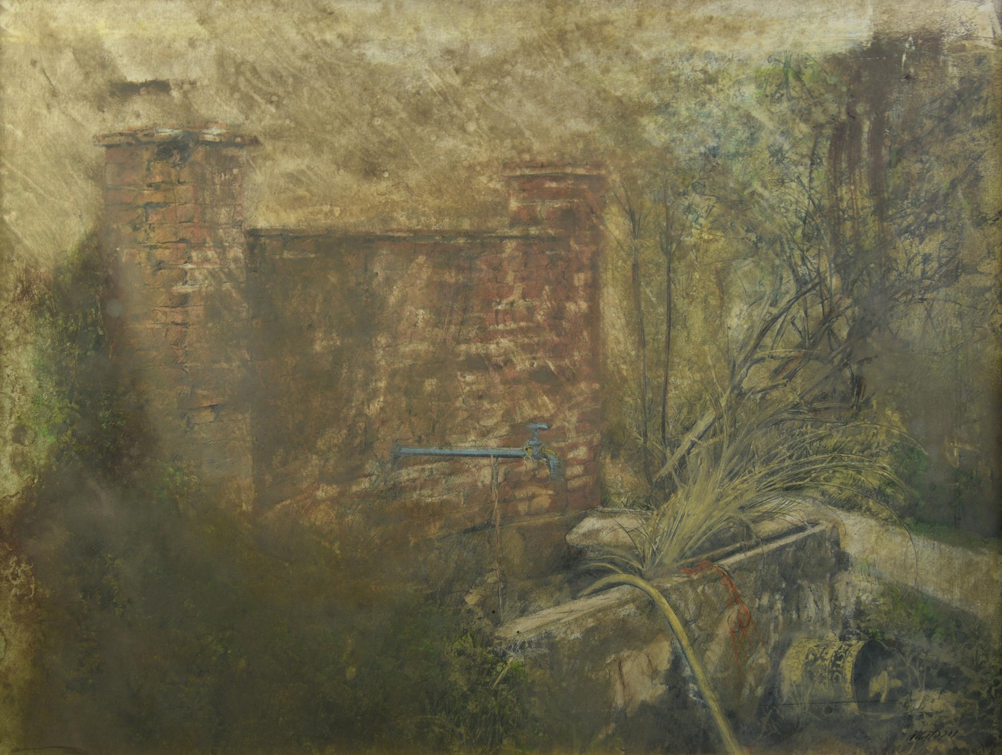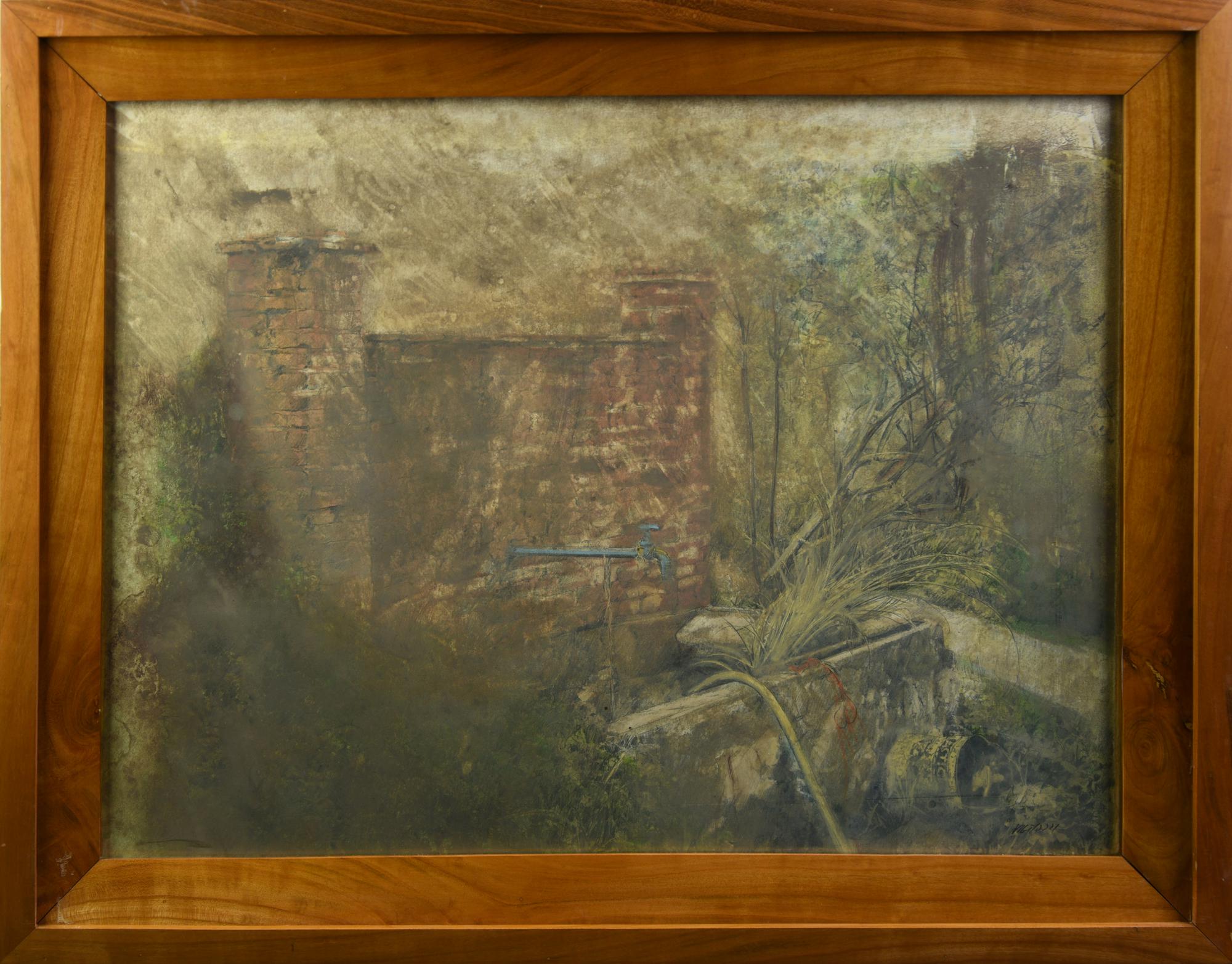 Piero Vignozzi LA FONTE tecnica mista su carta applicata su tela, cm 41x54 firma