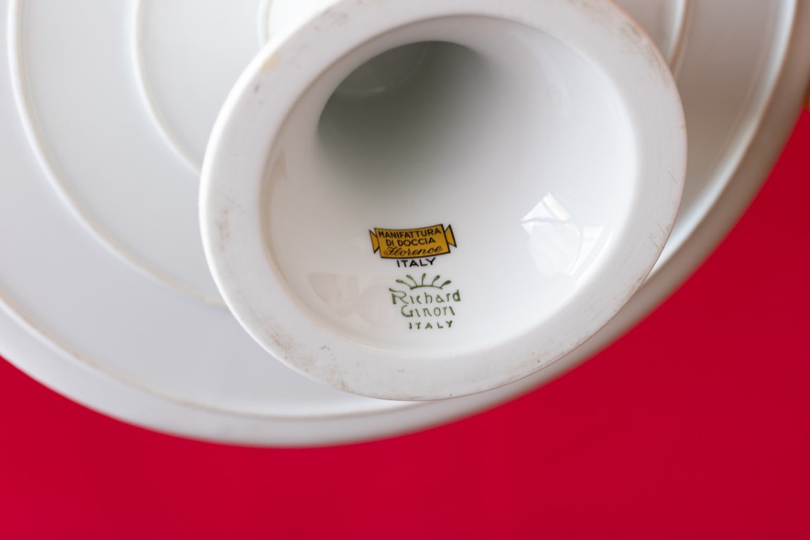 realizzata con decoro Amalfi, decorata a decalcomania e ritoccata a mano, marchio oro 'Manifattura di Doccia Florence, Italy'