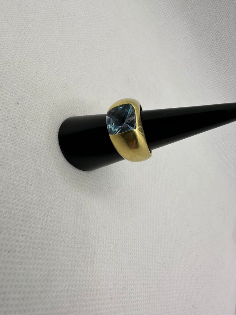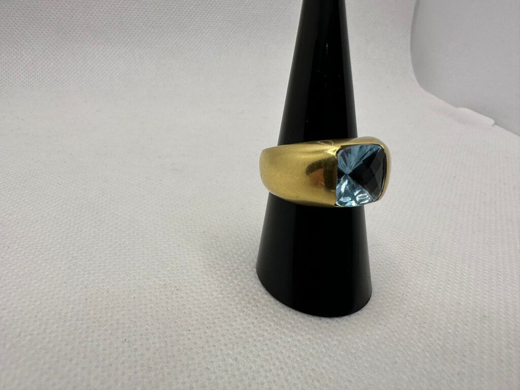 ANELLO IN ORO GIALLO 18K CON PIETRA AZZURRA GRAMMI 10.92 - MISURA 17 - STE55