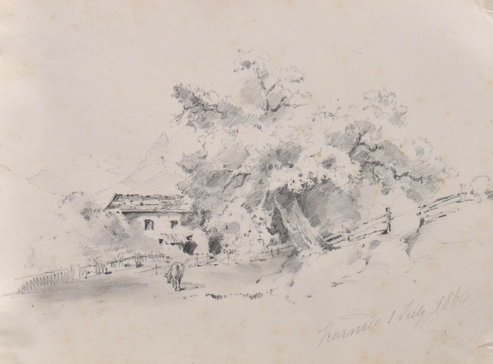 Karl Vinzenz Moser (Bozen/Bolzano 1819 - 1882) Maso a Cornedo presso Bolzano, 1860;Matita, 21,3 x 28,5cm