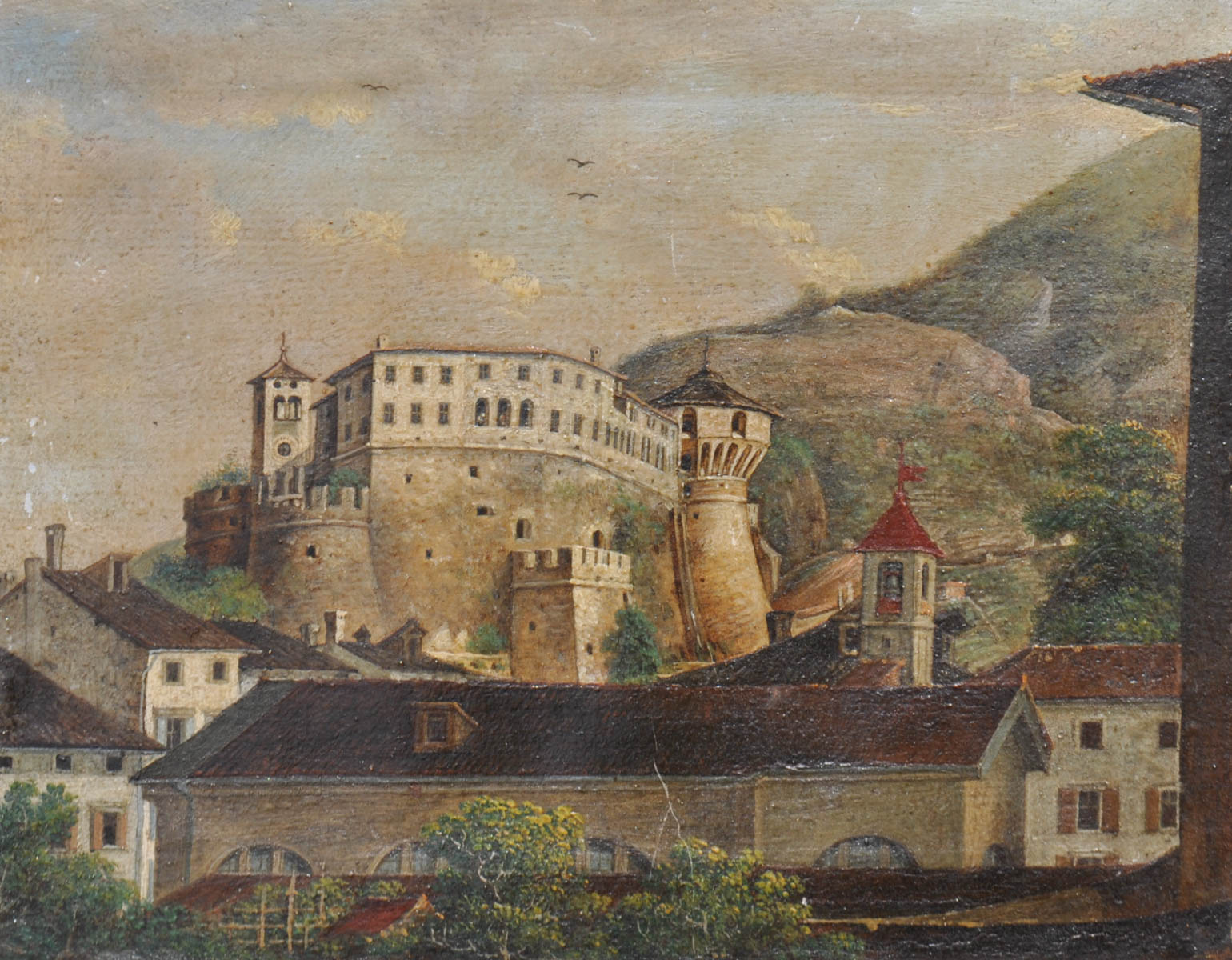 Josef Malfèr (1831 - 1907) Castello di Rovereto, 1850;Olio su carta su cartone, 19 x 24,3 cm, in