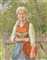 Hugo Engl (Lienz 1852 - Silz 1926) Contadinella tirolese, 1922;Olio su...