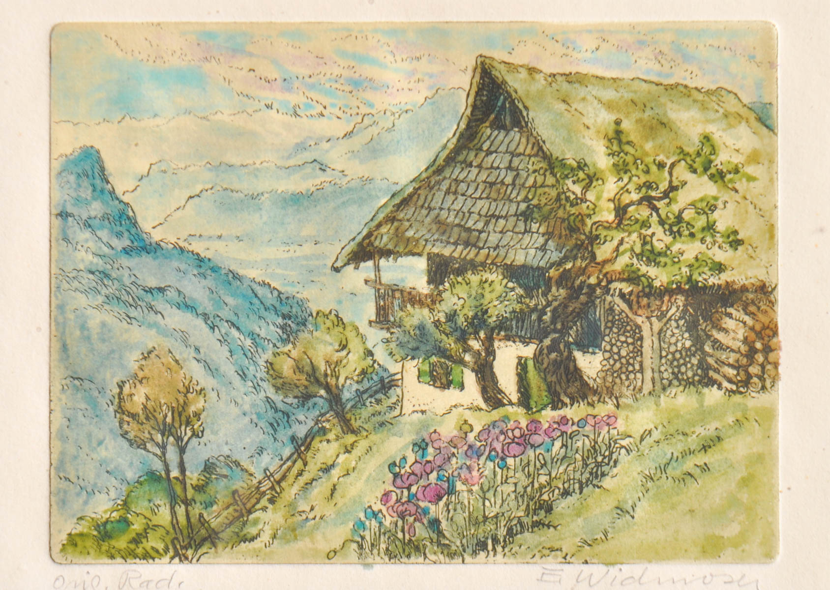 Elfi Widmoser Maso;Acquaforte colorata, 11,2 x 15 cm (lastra), in cornice