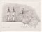 Paul Flora (Glurns/Glorenza 1922 - Innsbruck 2003) Un uccello decorativo con due figure, 1973;China e matite colorate, 23 x 30 cm (entro il