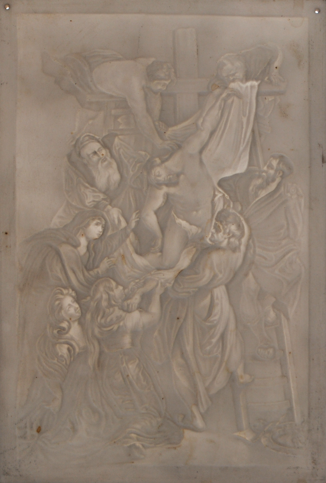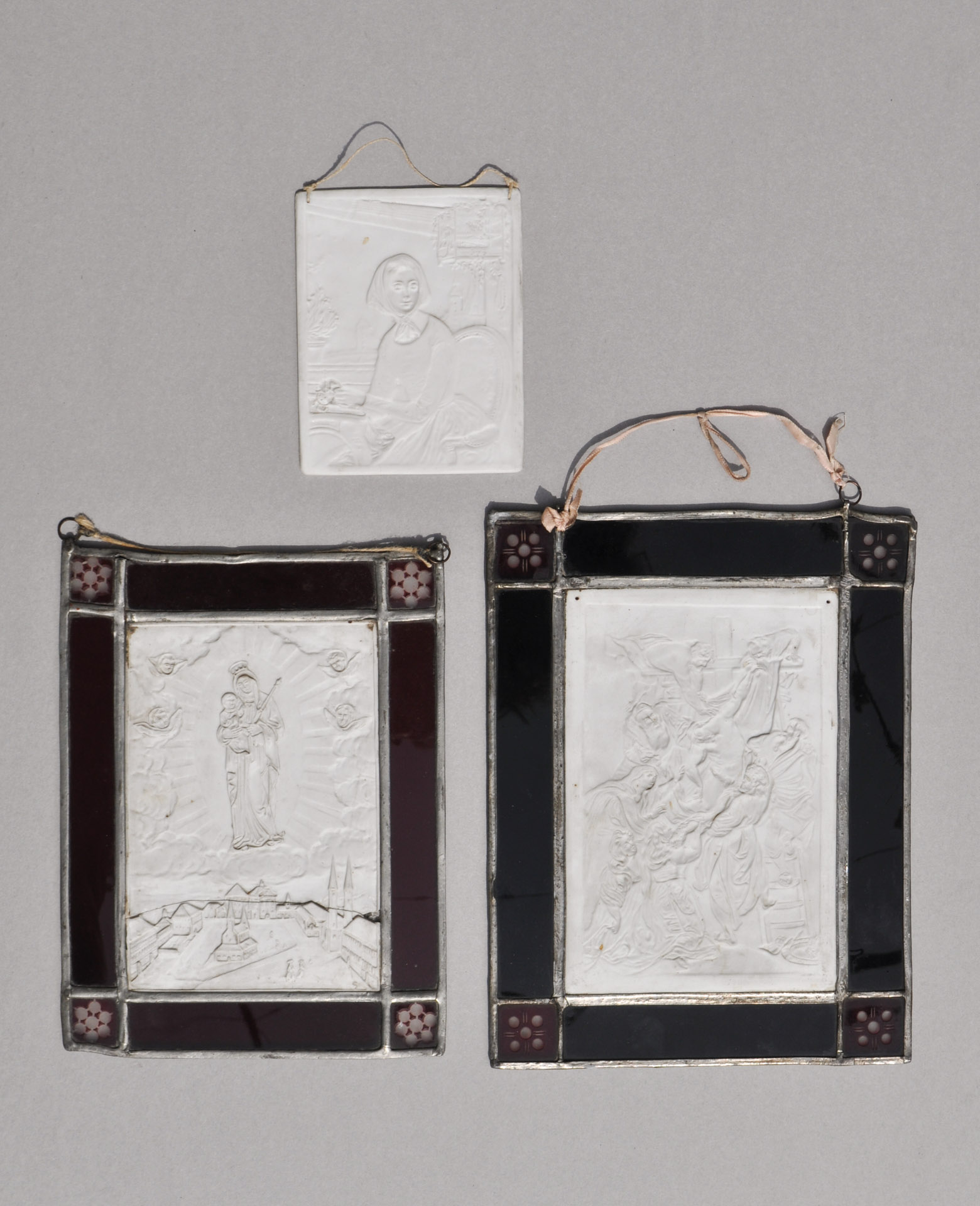 Tre litofanie di porcellana Biscuit trasparente, in parte incorniciate