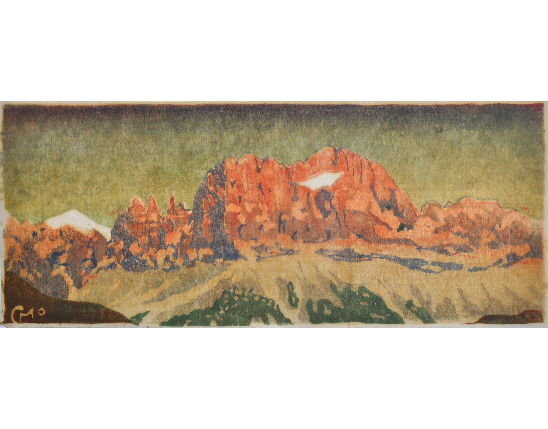 Anton Theodor Röggla nach/da Carl Moser Catinaccio;Xilografia a colori, 18 x 44 cm