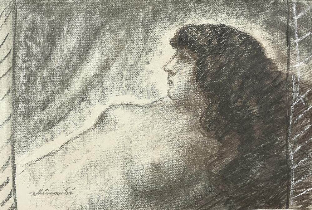 Enrico Allimandi PROFILO DI DONNA carboncino su carta, cm 36x50 firma