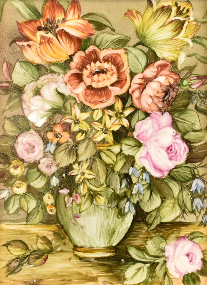 Paola Fenoglio VASO DI FIORI olio su ceramica invetriata, cm 24,5x18 firma