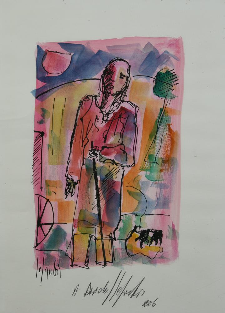 Giuseppe De Santis FIGURA tecnica mista su cartoncino, cm 35x25 firma e...