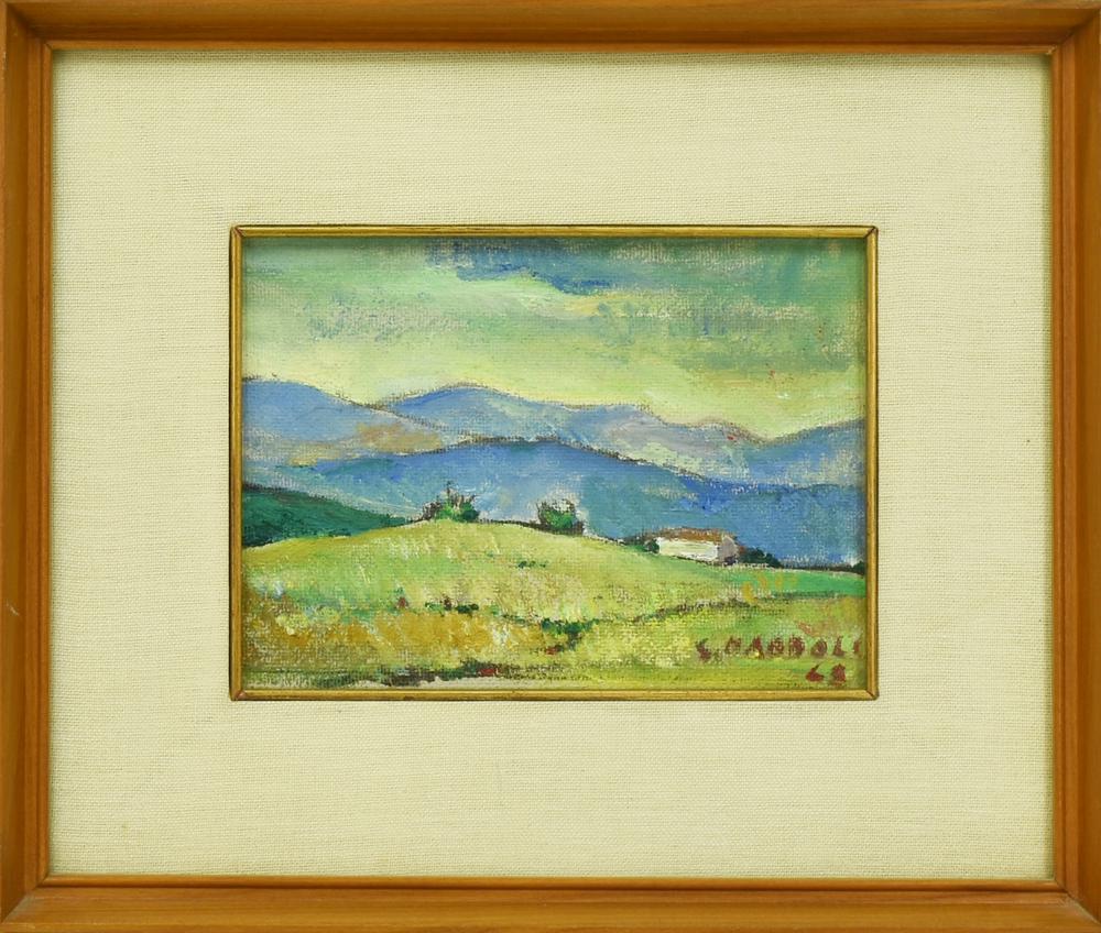 Ignoto VEDUTA MONTANA olio su cartone telato, cm 19x14 firma