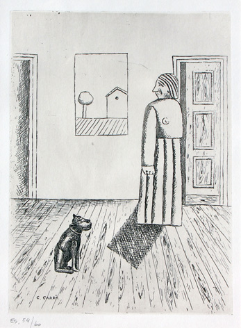 CARRA' Carlo (Quargnento 1881 - Milano 1966) Senza titolo acquaforte cm. 49.5 x 34.5 Edizione di 60 esemplari Timbro di Luigi De Tullio Stampatore (in basso a sinistra); timbro dello Studio Carrà Milano (in basso a destra); firma 'C. Carrà' (in basso a sinistra) Dichiarazione di autenticità di Massimo Carrà (al retro)