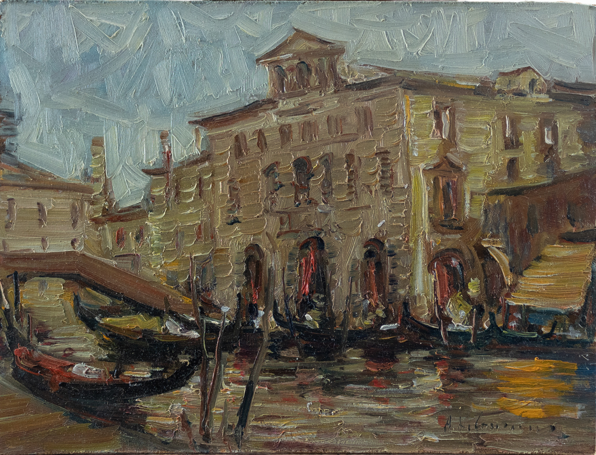 Armando De Lauzieres (Portici 1943) Venezia, Olio su tavola, 18x24 cm