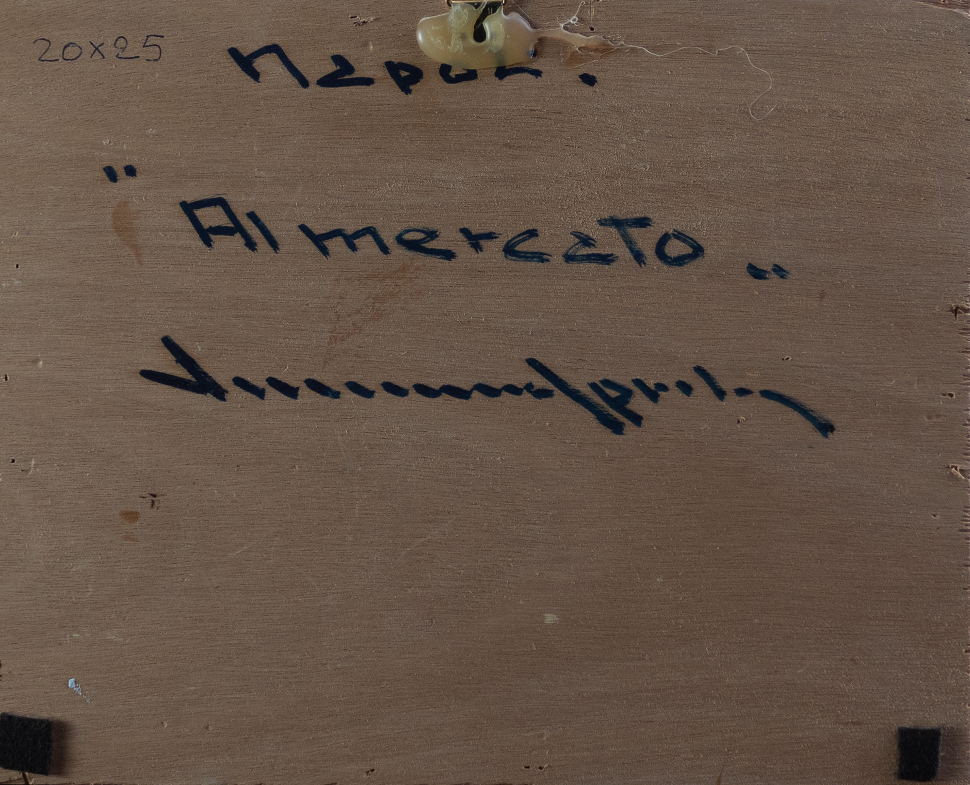 Vincenzo Aprile (Napoli 1952) Al mercato, olio su compensato, 20x25 cm