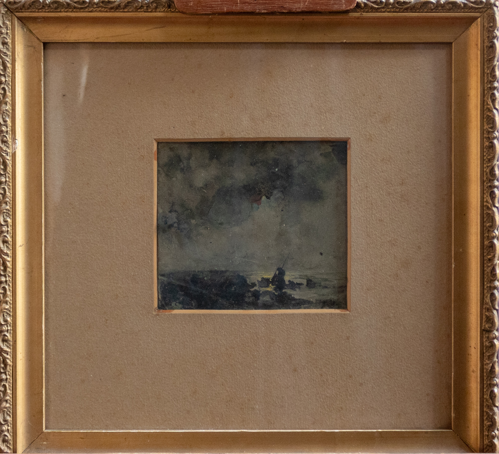 Attilio Pratella (attr.) (Napoli 1892 - 1980) Paesaggio marino, tempera su carta, 12x13 cm