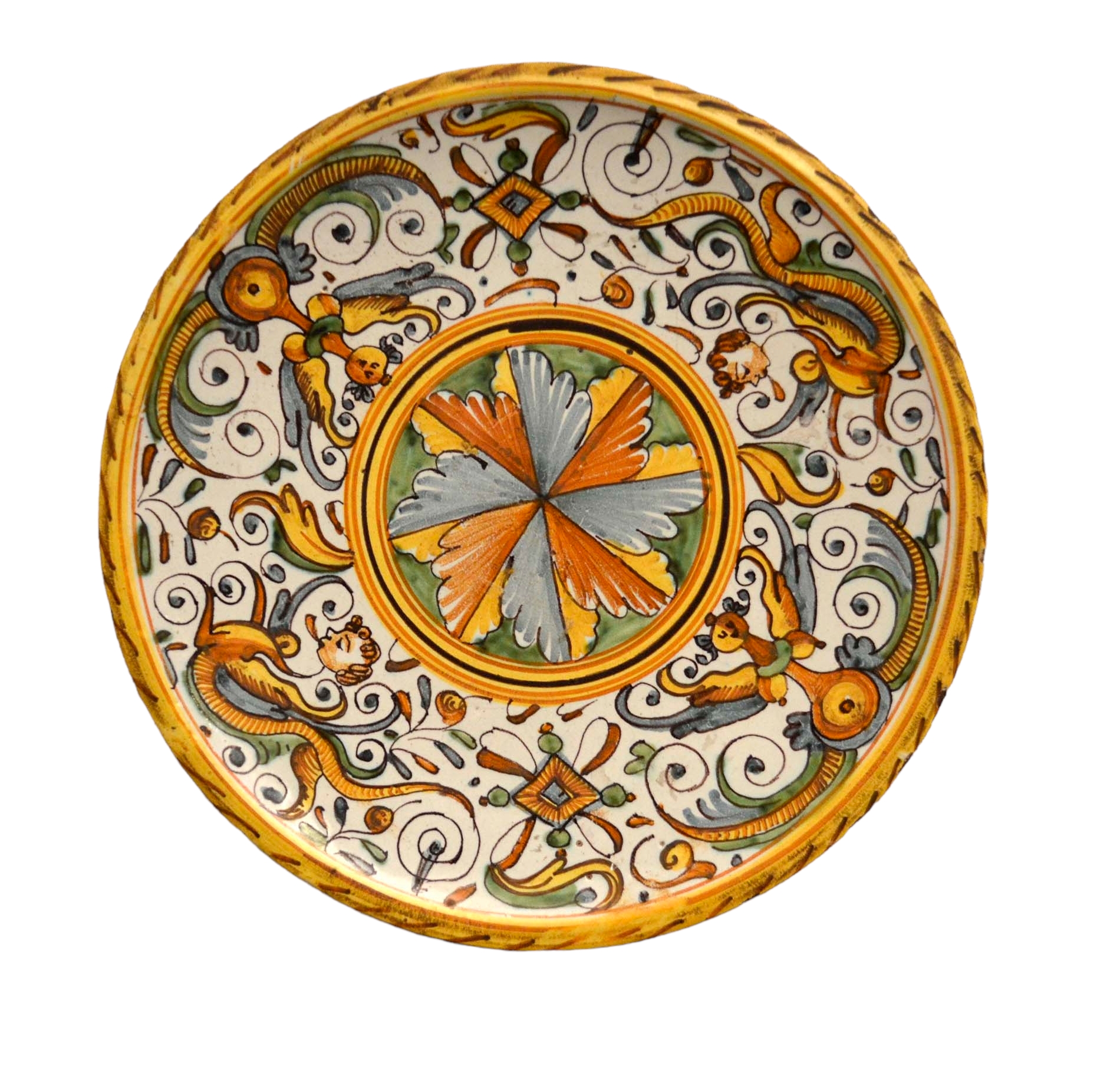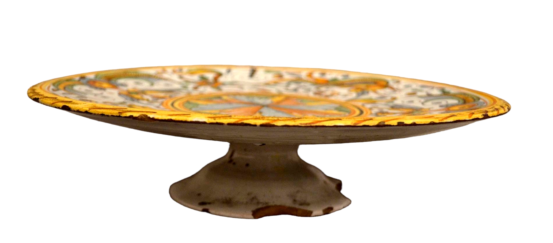 ALZATA in maiolica istoriata Deruta .XVIII secolo Umbria, Italia h cm 6 x Ø 25,5