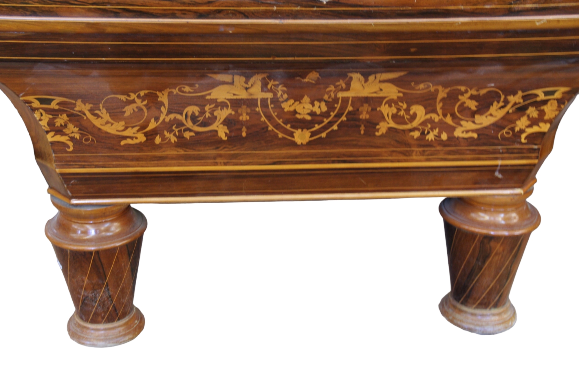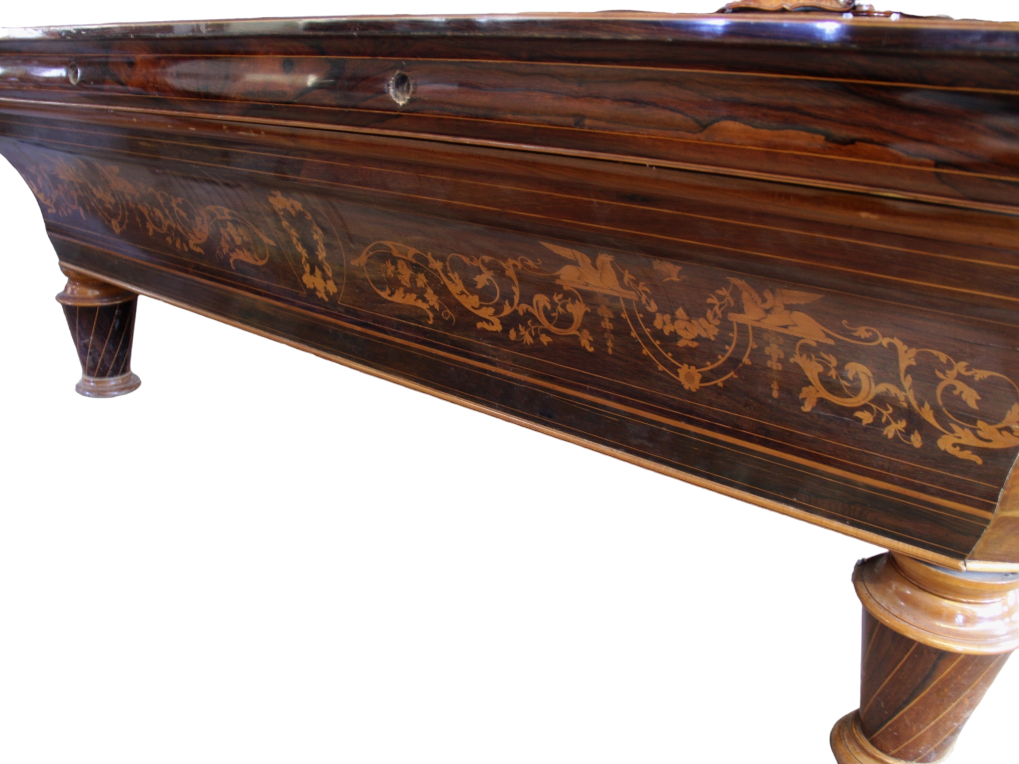 ECCEZIONALE TAVOLO DA CARAMBOLA CARLO X in mogano intarsiato in bosso XIX secolo Italia h cm 80 x 250 x 138