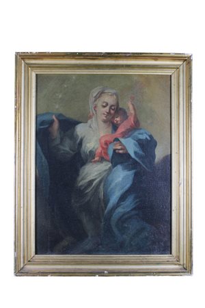 DIPINTO, OLIO SU TELA Raffigurante Madonna con Bambino scuola Veneta XVIII secolo h cm 54 x 42 / cornice h cm 64 x 51