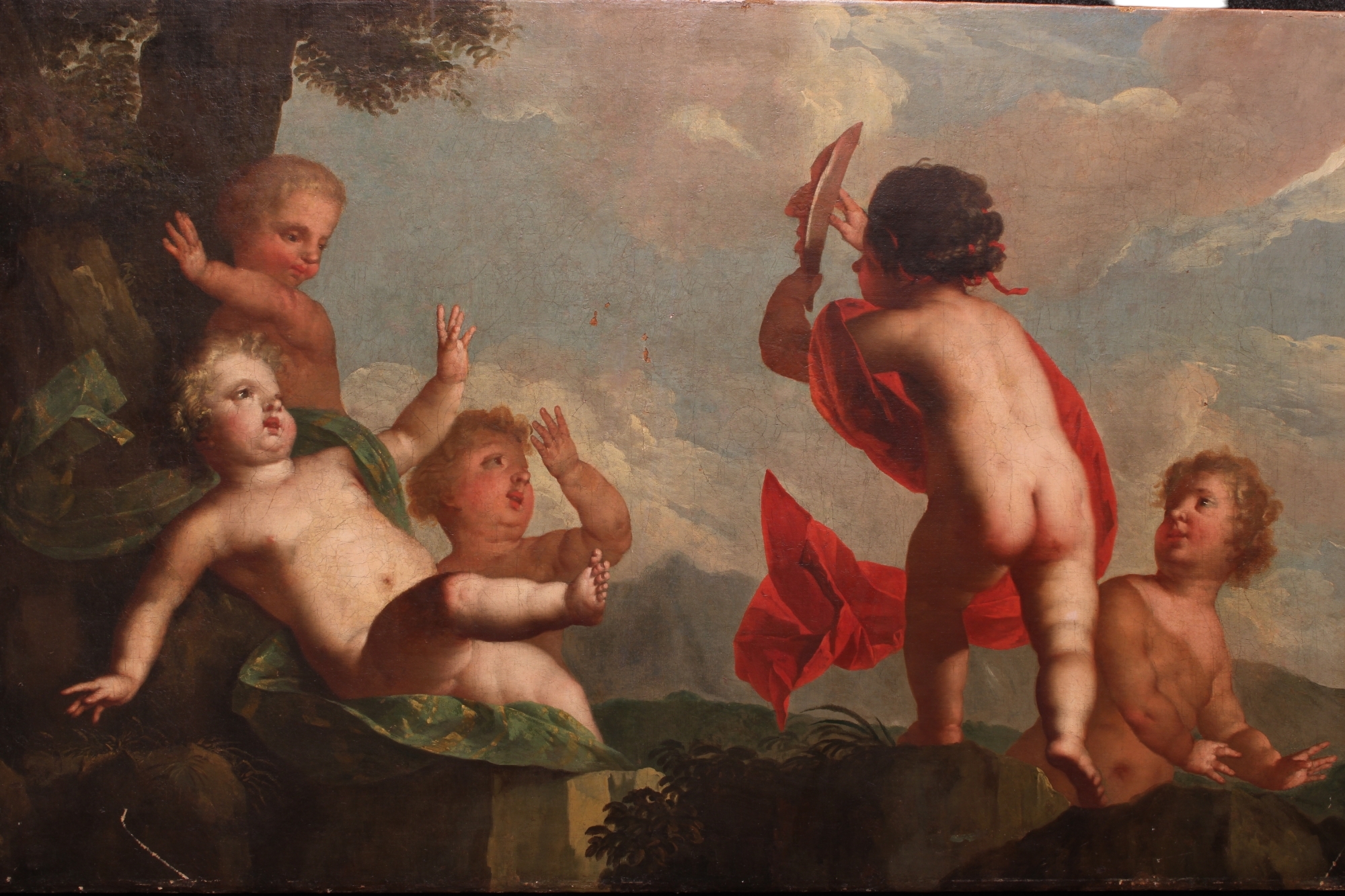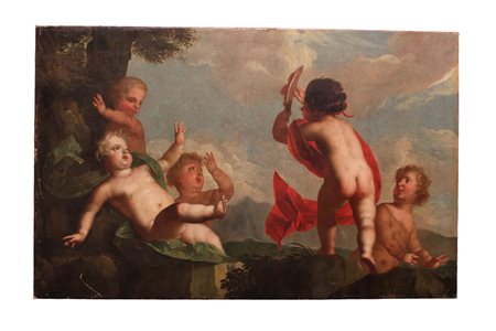 OLIO SU TELA Raffigurante Allegoria di putti, attribuibile a Francoise Boucher 1703-1770 h cm 93 x 147