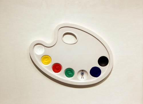 DE MOLFETTA Francesco (Garbagnate Milanese 1979) La tavolozza di Francesco De Molfetta, 2005 tecnica mista su cartone intelato cm. 30 x 40 Titolo, firma, data 'La tavolozza di Francesco De Molfetta, F. De Molfetta, 2005' (al retro) Autentica dell'artista su fotografia
