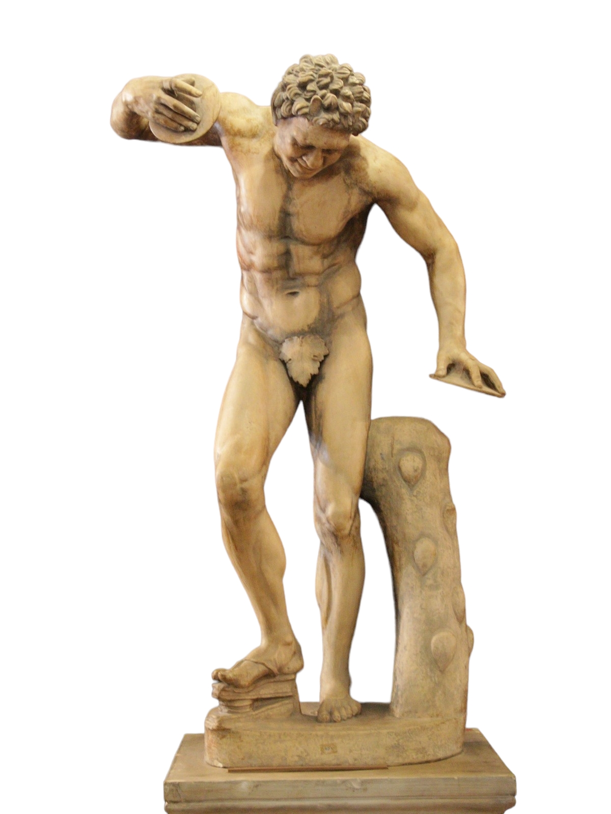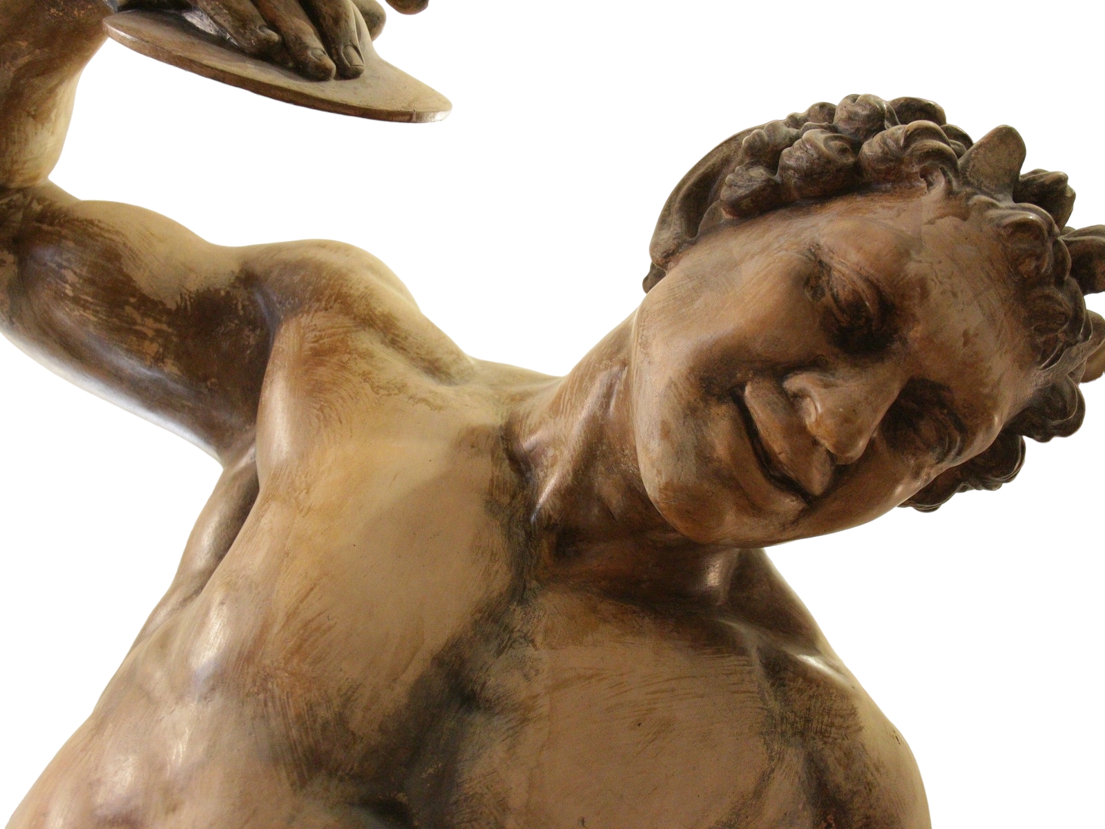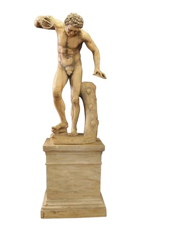 SCULTURA in terracotta raffigurante Suonatore di cembali su base quadrangolare manifattura italiana XIX secolo h cm 134 x 60 x 47 / base 78 cm