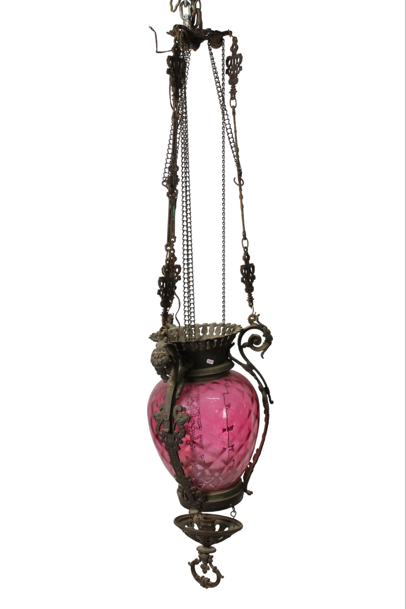 LAMPADA SALI E SCENDI in metallo patinato e lampade in vetro Sicilia XIX secolo h cm 110 x 25