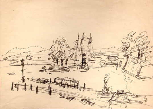 VELLANI MARCHI Mario (Modena, 1895 - Milano 1979) Senza titolo inchiostro su cartoncino cm. 28 x 40 Iniziali 'MVM' (in basso a destra)