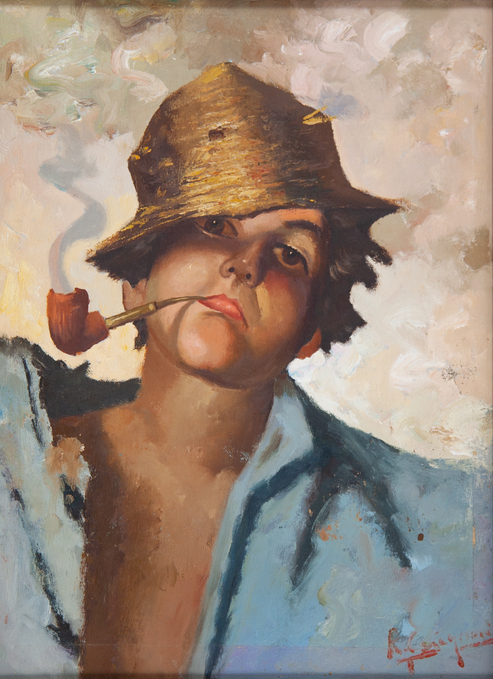 CARIGNANI ROBERTO'Scugnizzo con pipa'olio su telacm 40x30firmato in basso a destra