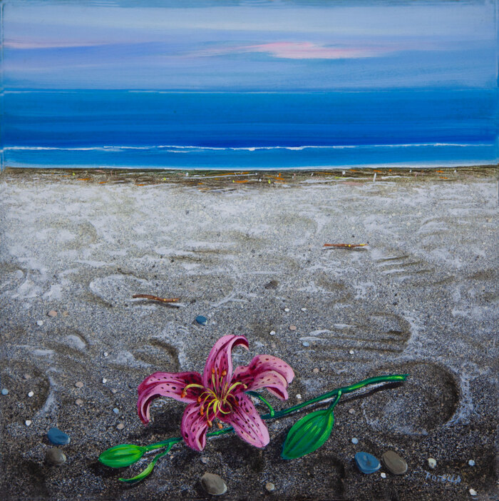 GIOVAN BATTISTA ROTELLA(GIMIGLIANO 1947)'Ultimo giglio'olio su telacm 40x40firmato al fronte e al retro