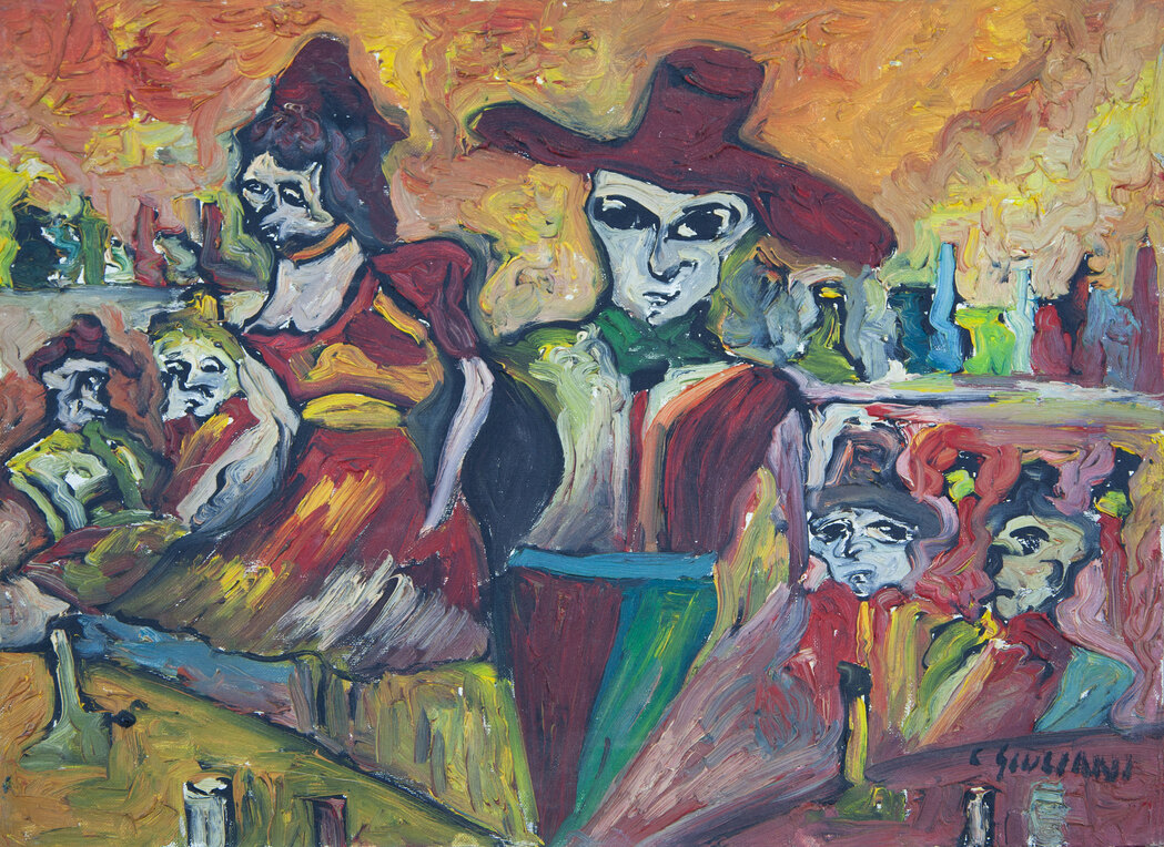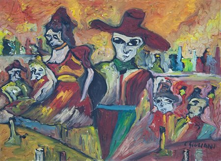 CARLO GIULIANI(BARI)'Night club'olio su telaanno 1993cm 50x70firmato al fronte e al retro + etichetta artista
