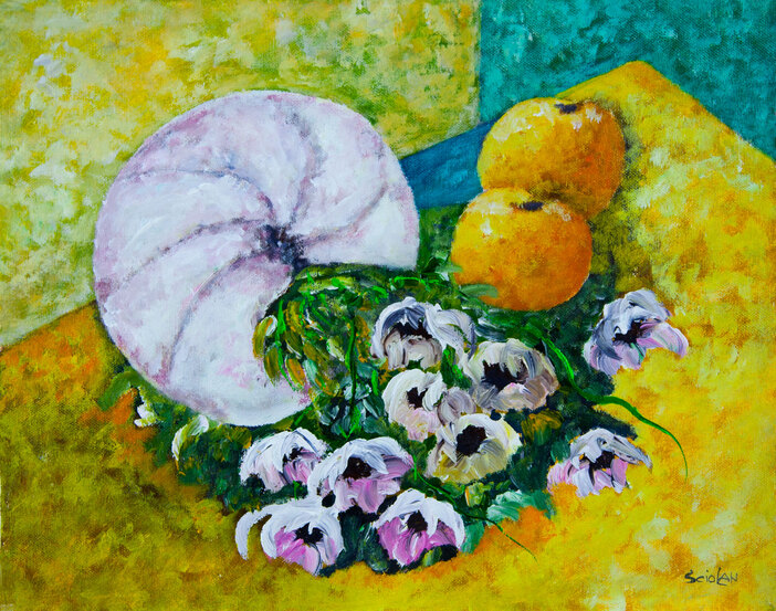 SCIOLAN RENATO'Natura morta'olio su telacm 40x50firmato al fronte e al retro