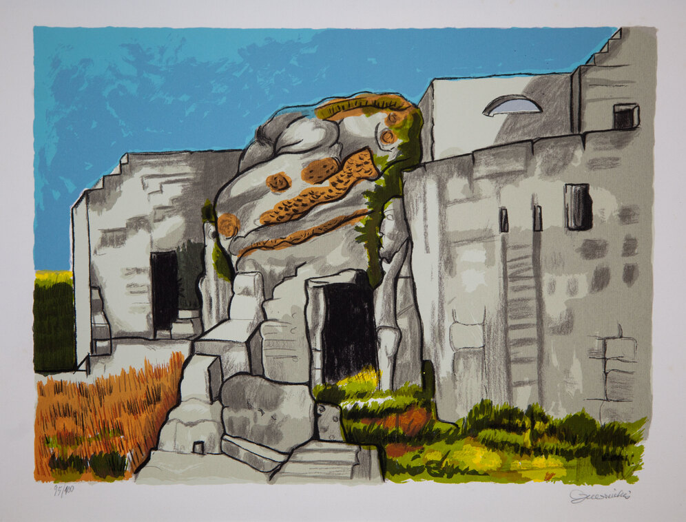 LUIGI GUERRICCHIO(MATERA 1932 - MATERA 1996)litografia su carta esemplare 95/100cm 45x60firmata in basso a destranumerata in basso a sinistra