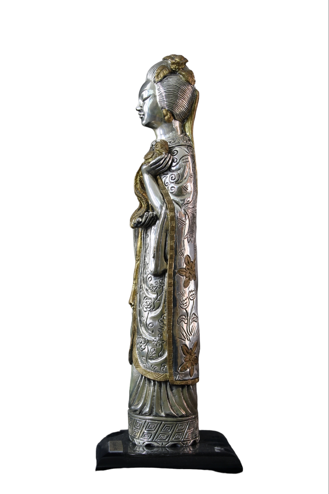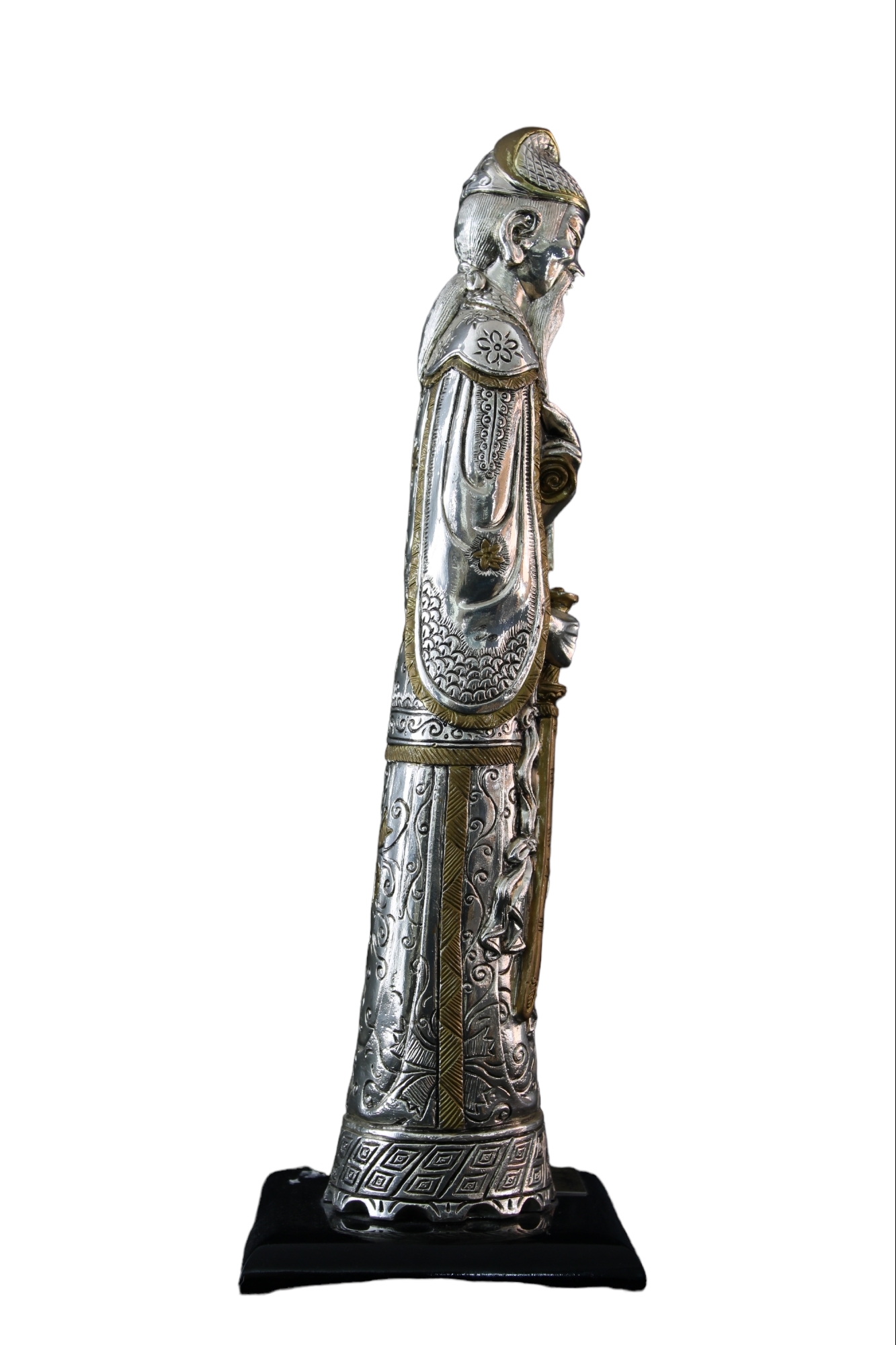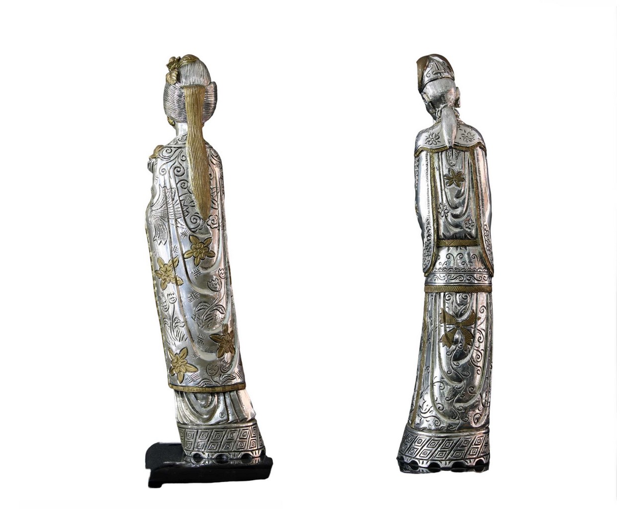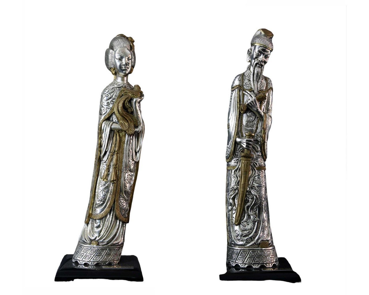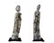 2 SCULTURE ORIENTALI in metallo Raffiguranti Una Divinità e un Dignitario XX secolo h cm 40 x 8 / h cm 39 x 8