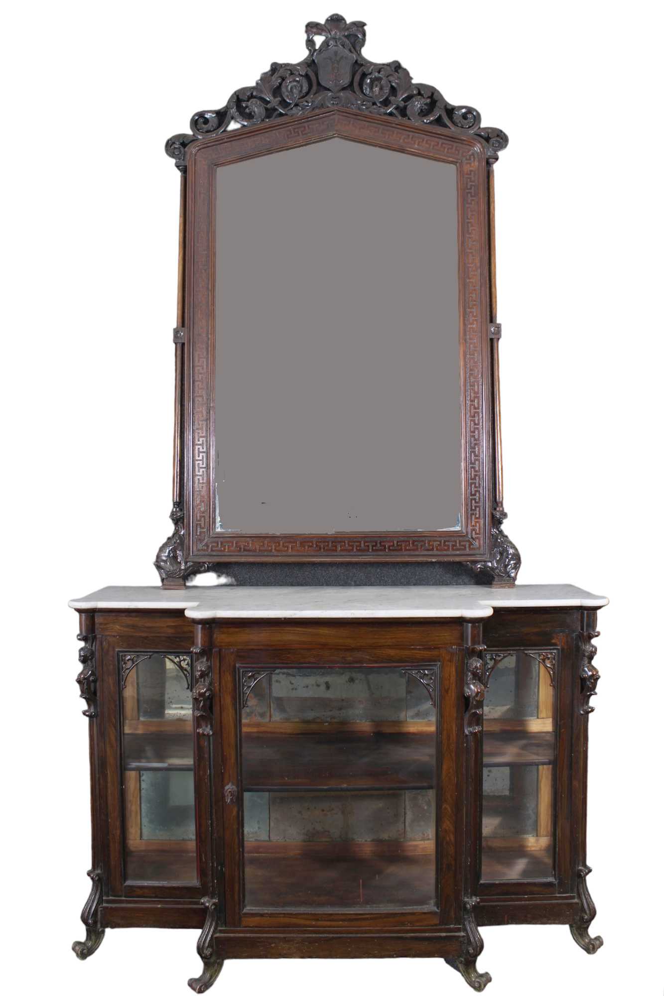 ETAGERE in noce 2 ante lesene decorate da foglie d'acanto scolpite XIX secolo Sicilia h cm 290 x 153 x 56