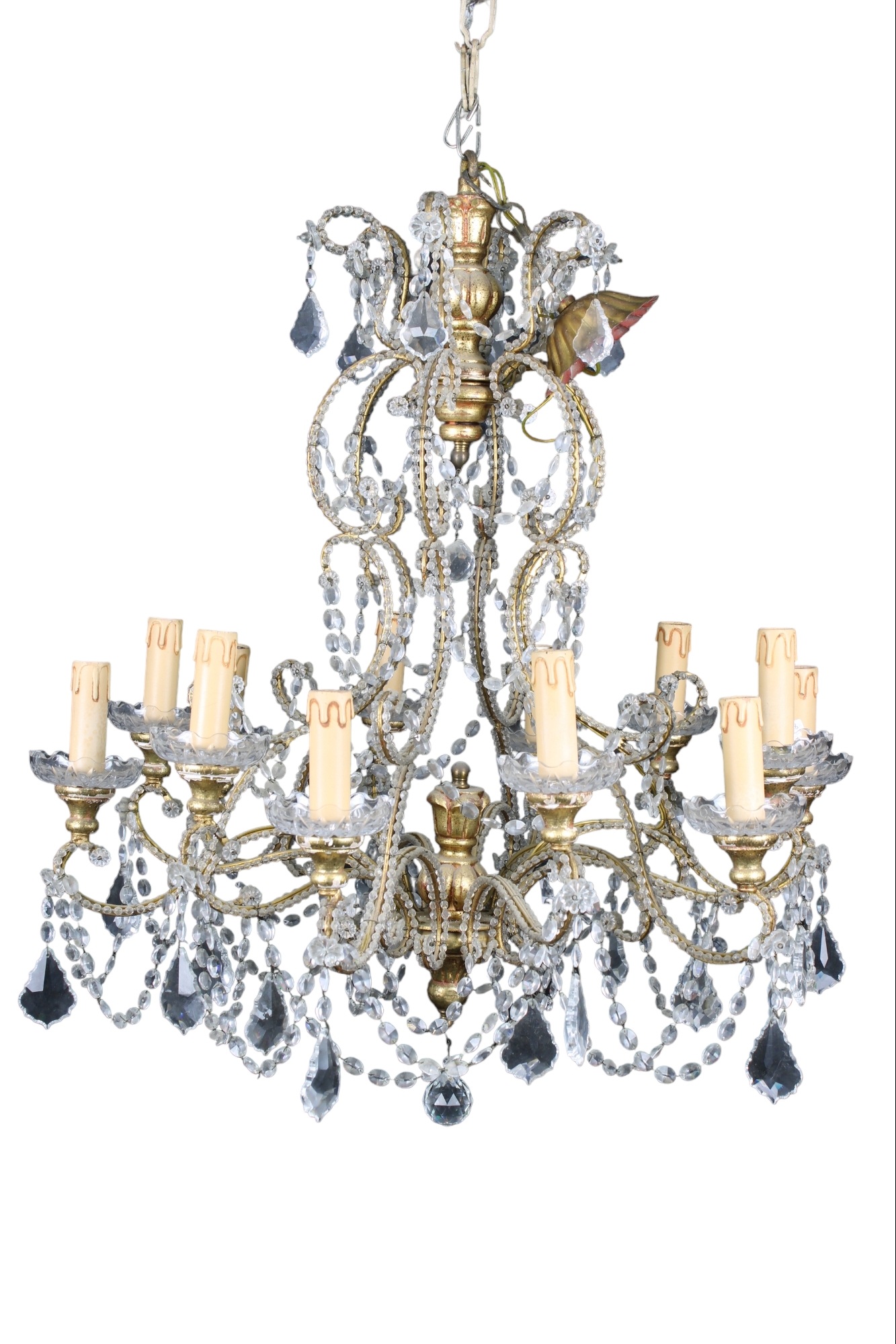 LAMPADARIO A 12 LUCI in ottone e brindoli vintage Italiano h cm 77 x 62