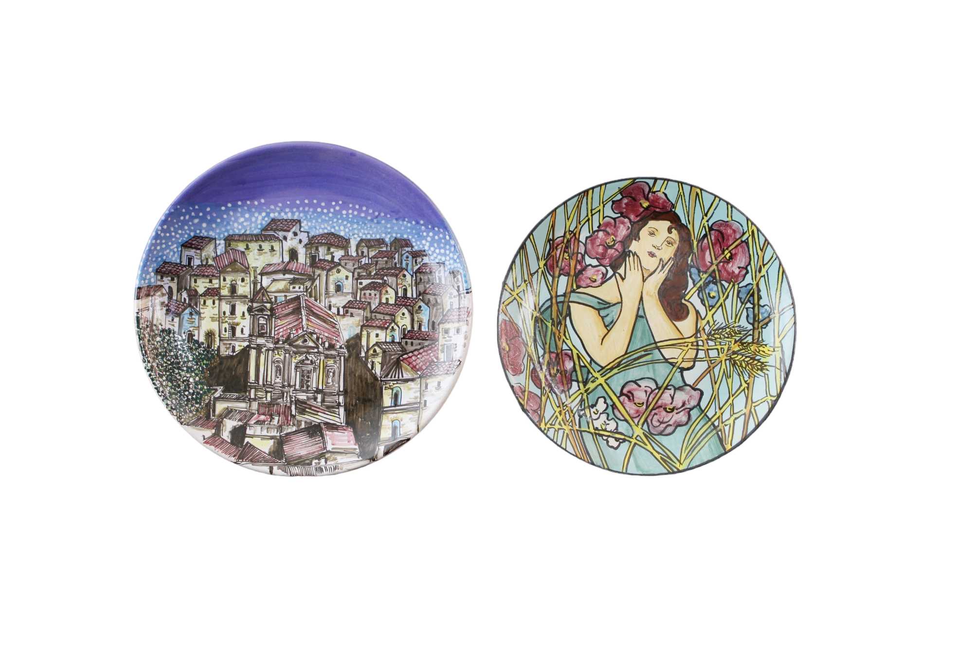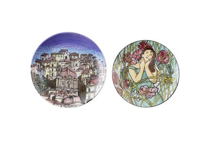 4 PIATTI DA PARATA in maiolica, decorati da soggetti diversi Primi 900 misure varie