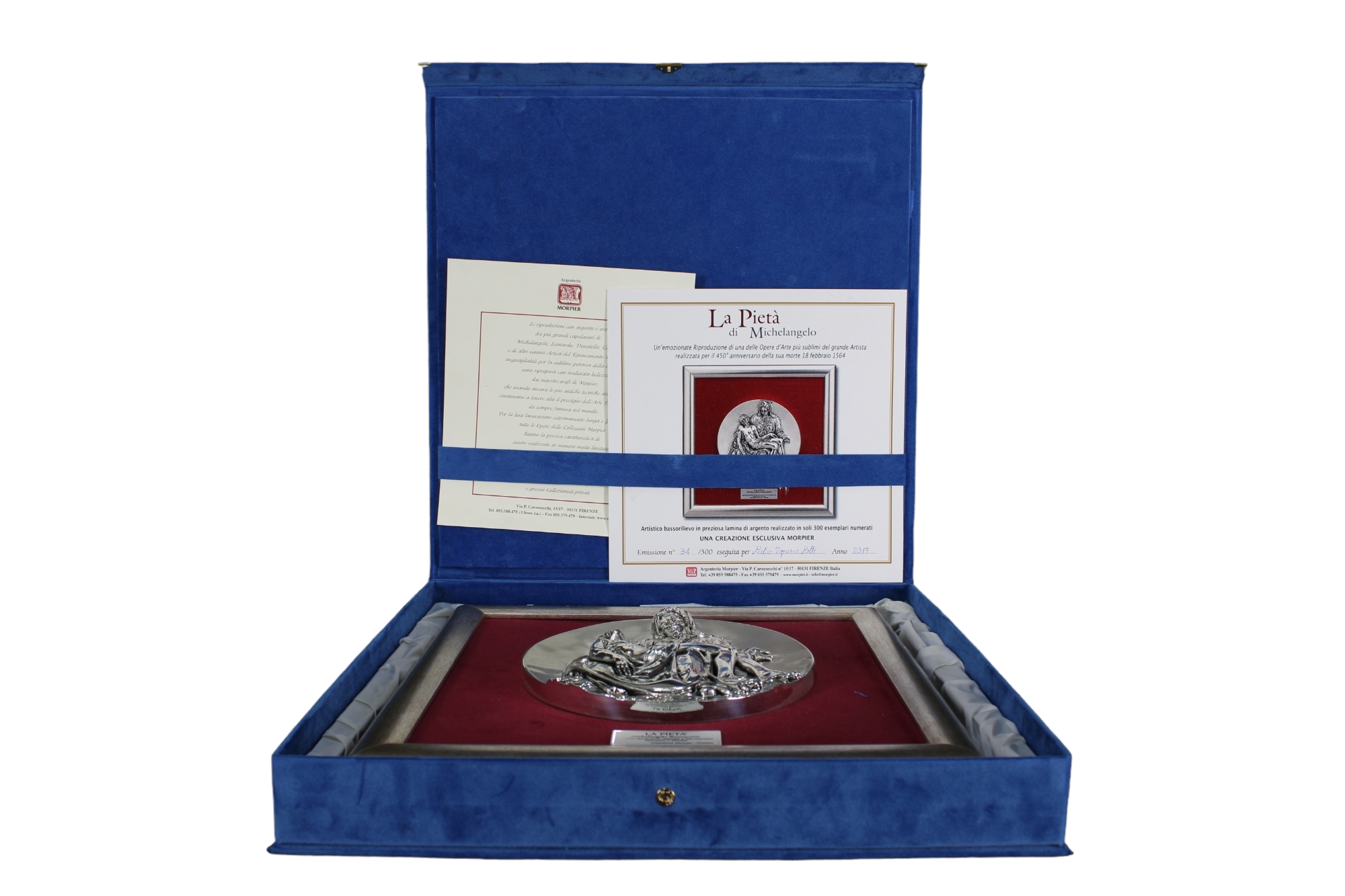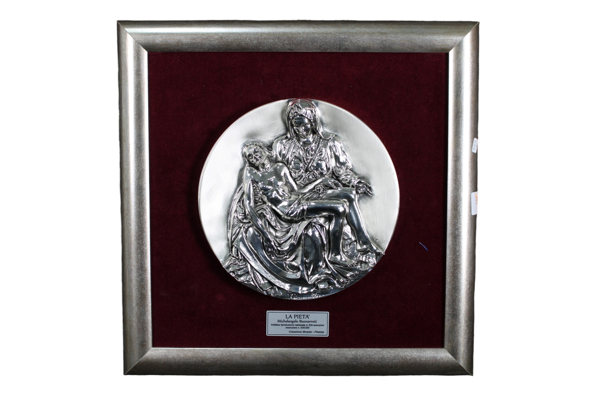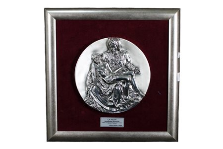 PLACCA in lamina d'argento raffigurante La Pietà di Michelangelo fa parte dei 300 esemplari realizzati h cm 34 x 34 / scatola originale h cm 40 x 40