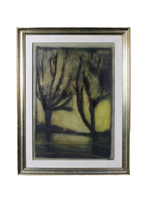 OLIO SU TELA Raffigurante paesaggio con alberi reca firma in basso a d/x Spica XX secolo h cm 70 x 50 / cornice h cm 85 x 64
