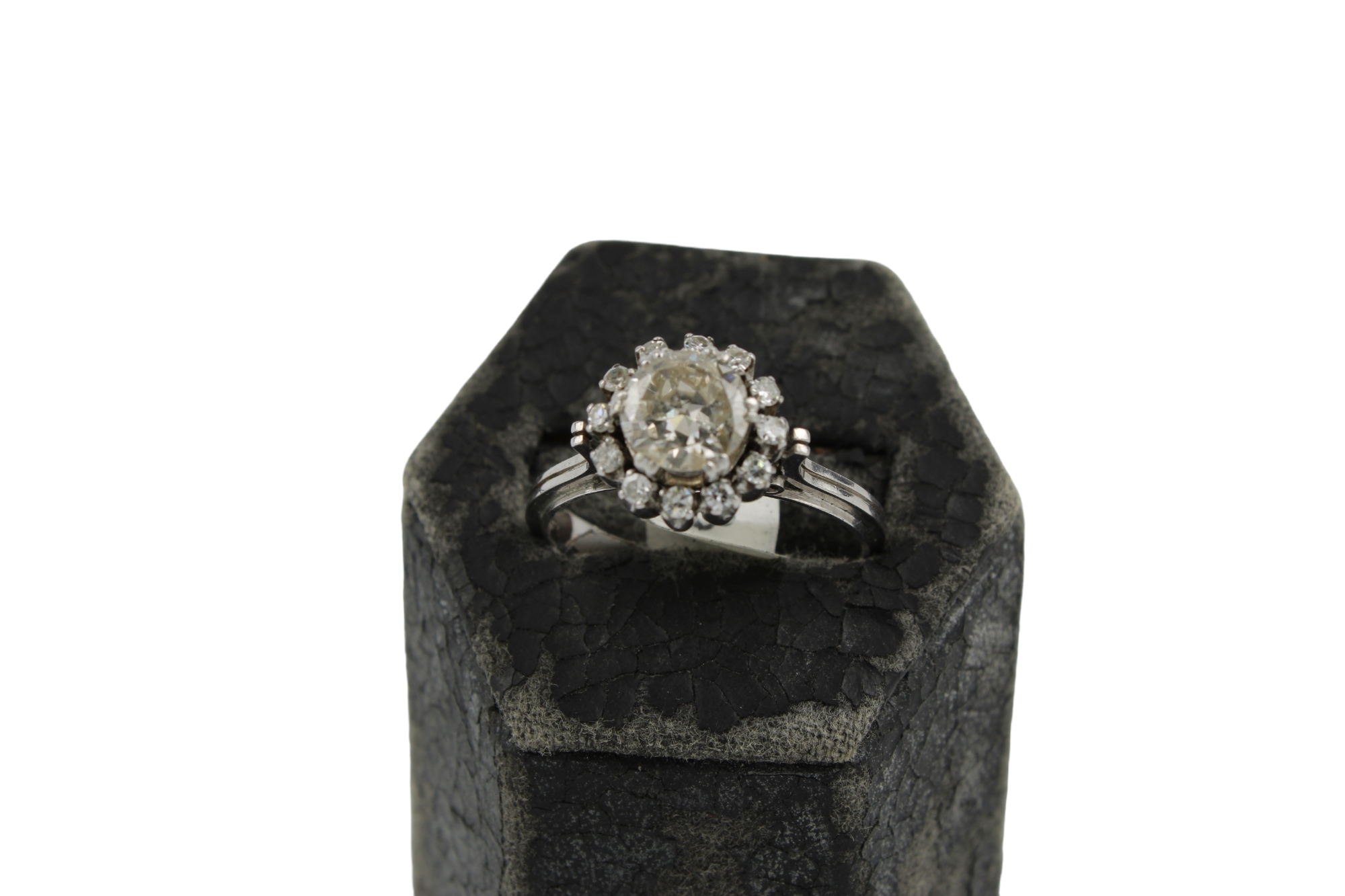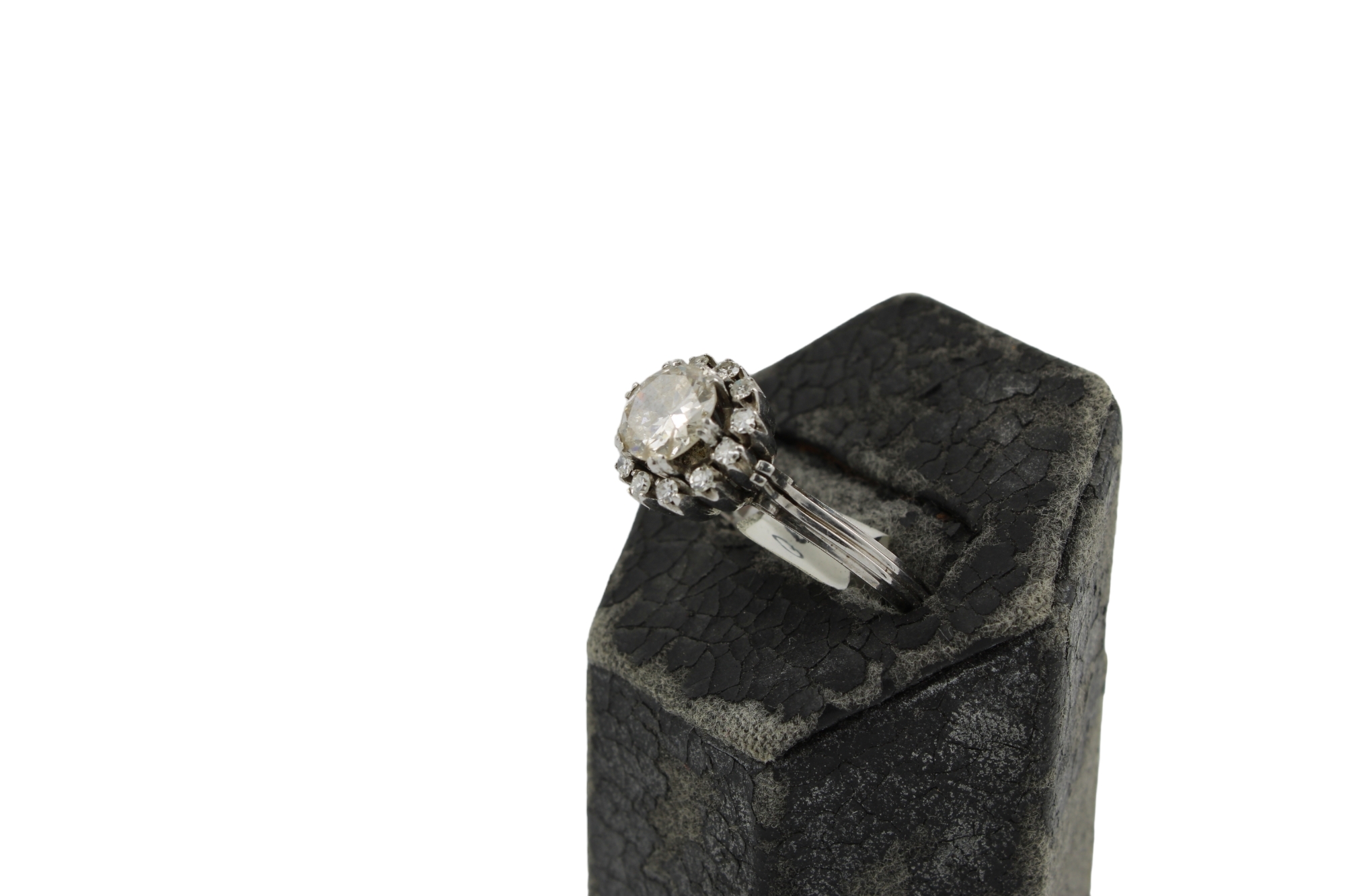 ANELLO in oro bianco 18 kt brillante kt 130 e contorno brillanti kt 0,26 difetti