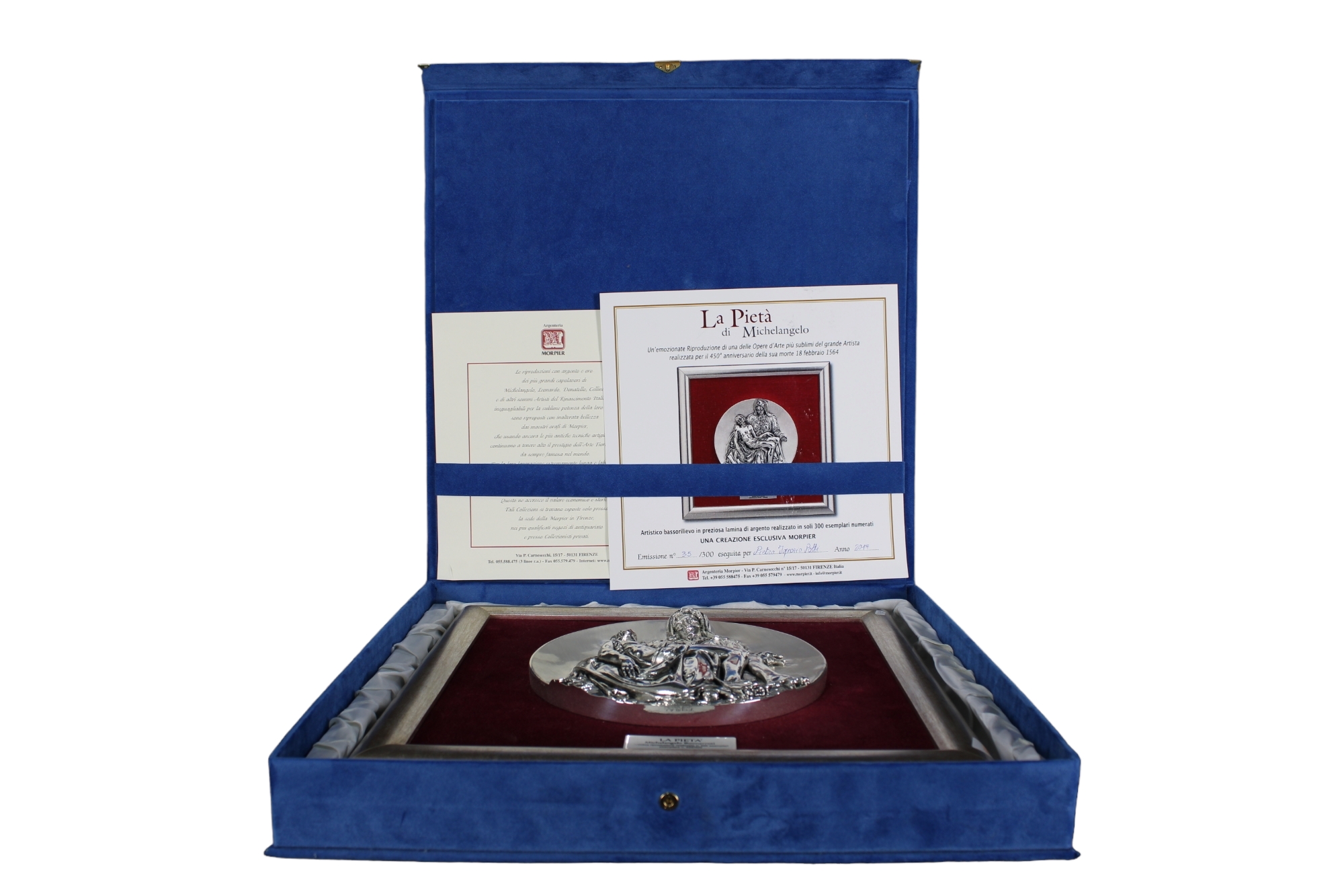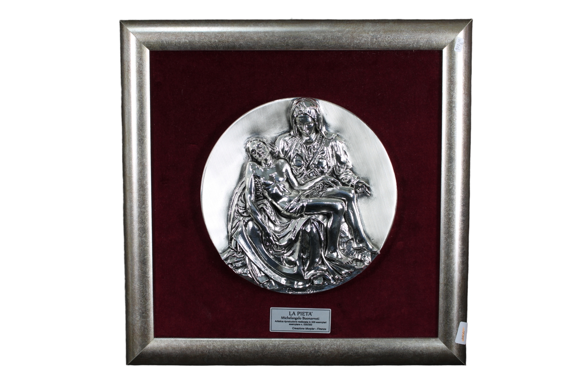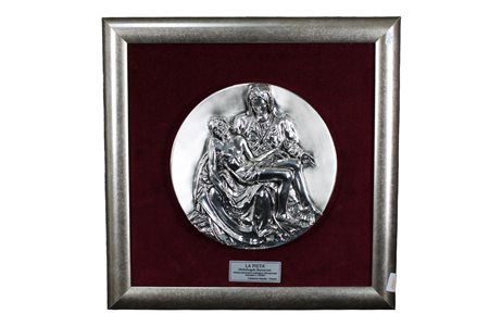 PLACCA in lamina d'argento raffigurante La Pietà di Michelangelo fa parte dei 300 esemplari realizzati h cm 34 x 34 / scatola originale h cm 40 x 40