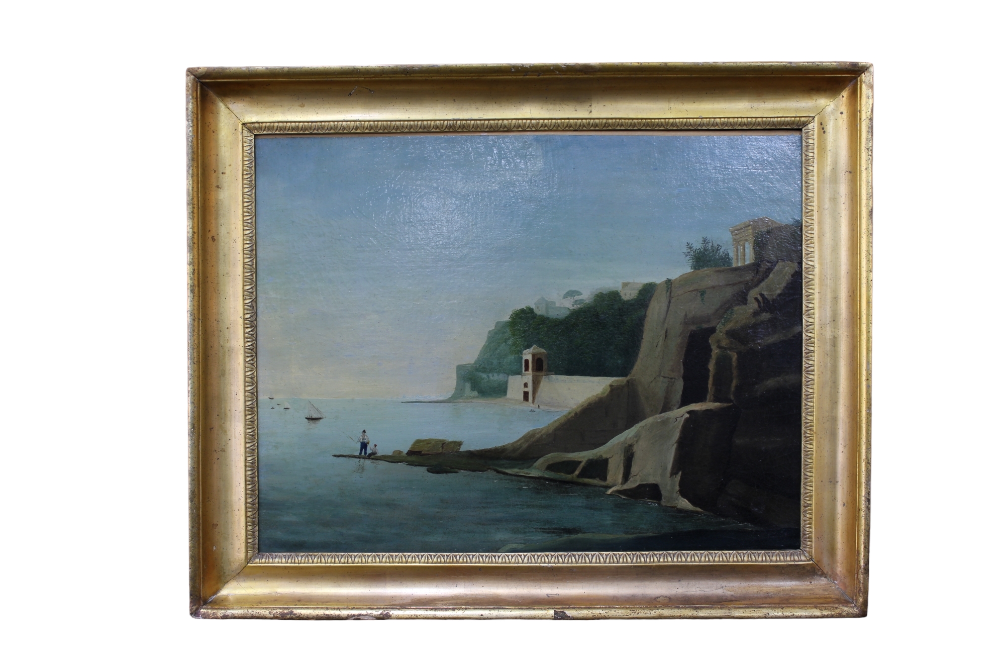 OLIO SU TELA raffigurante Paesaggio con litorale marino dipinto contemporaneo h cm 47 x 62 / cornice h cm 59 x 73