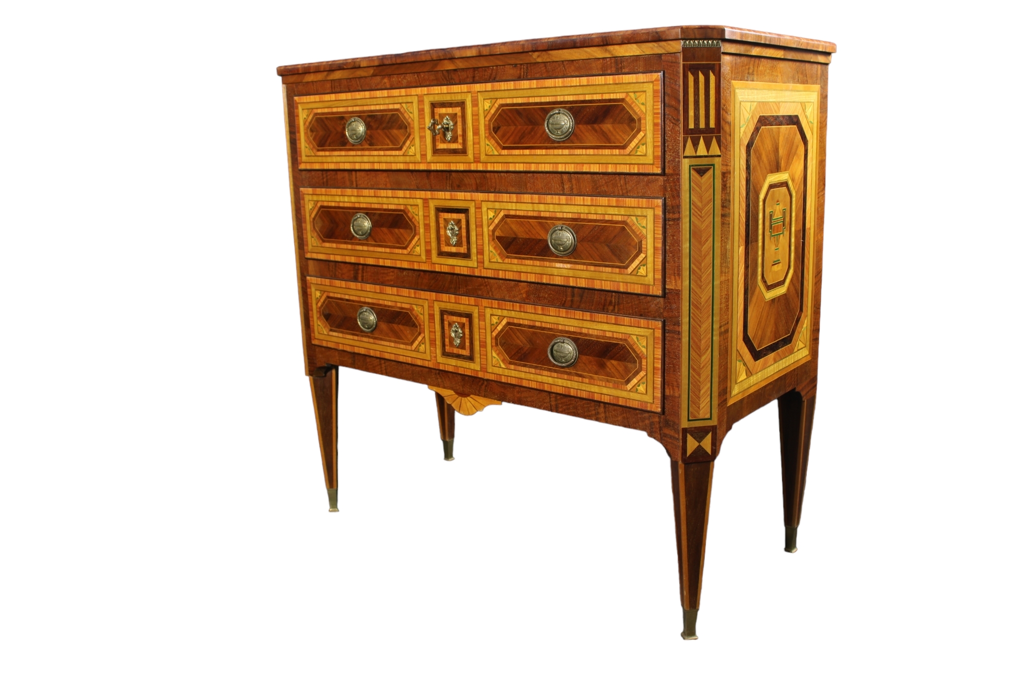 CASSETTONE STILE LUIGI XVI in varie essenze e filettature XX secolo ebanisteria siciliana h cm 102 x 106 x 50