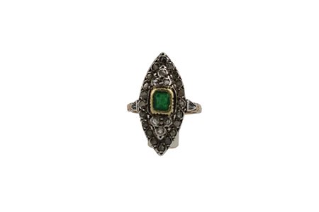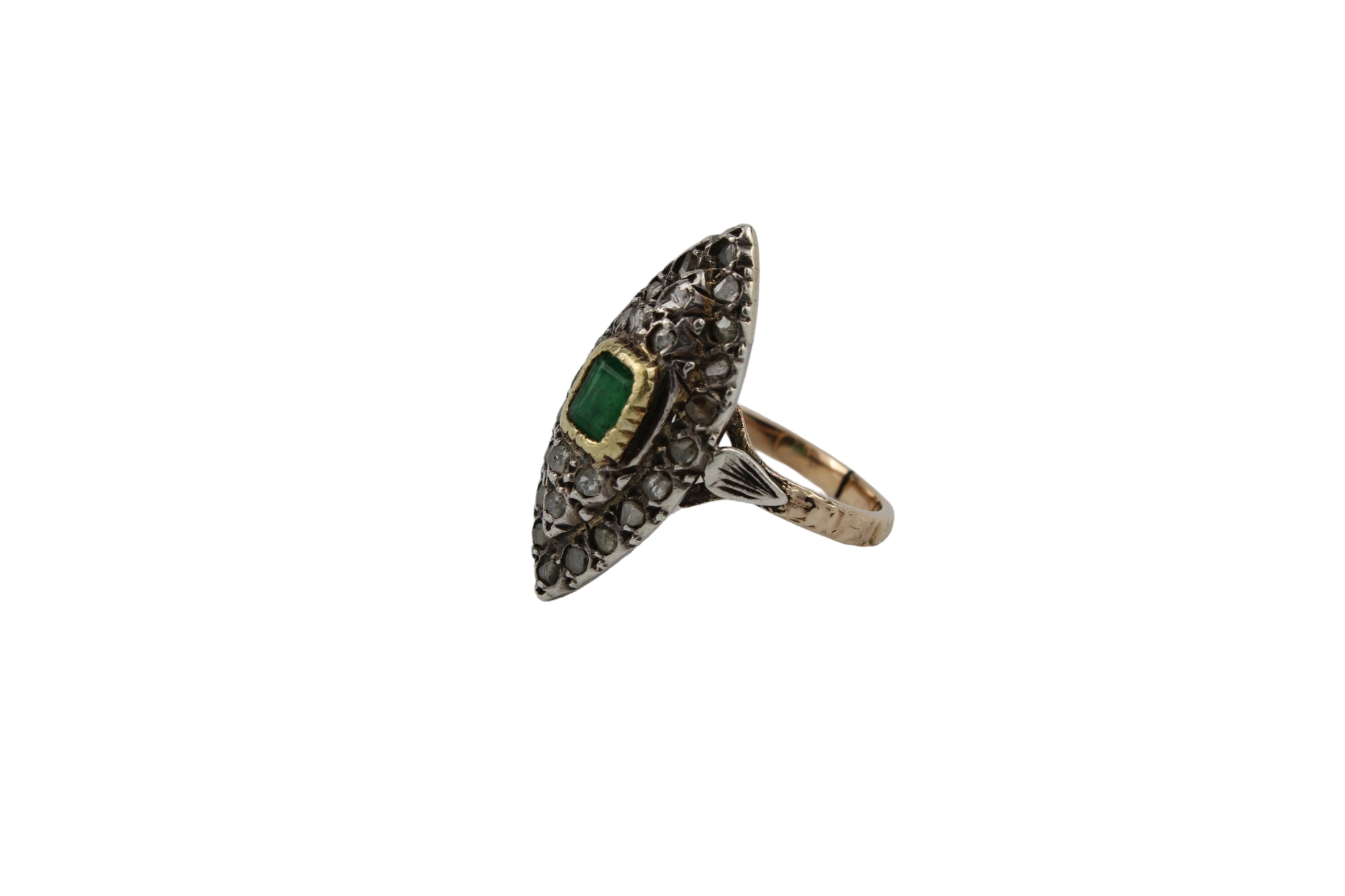 ANELLO spoletta smeraldo e diamanti in oro e coppella grammi 5,8
