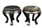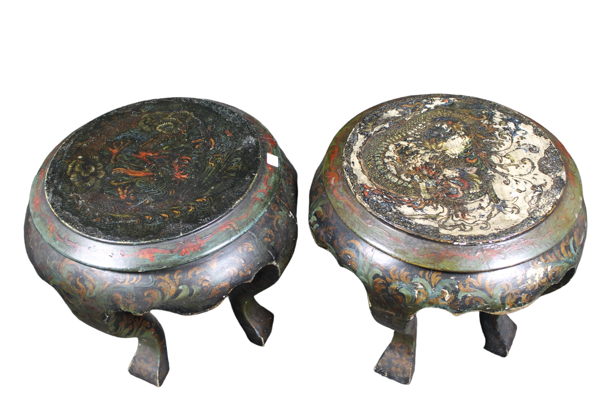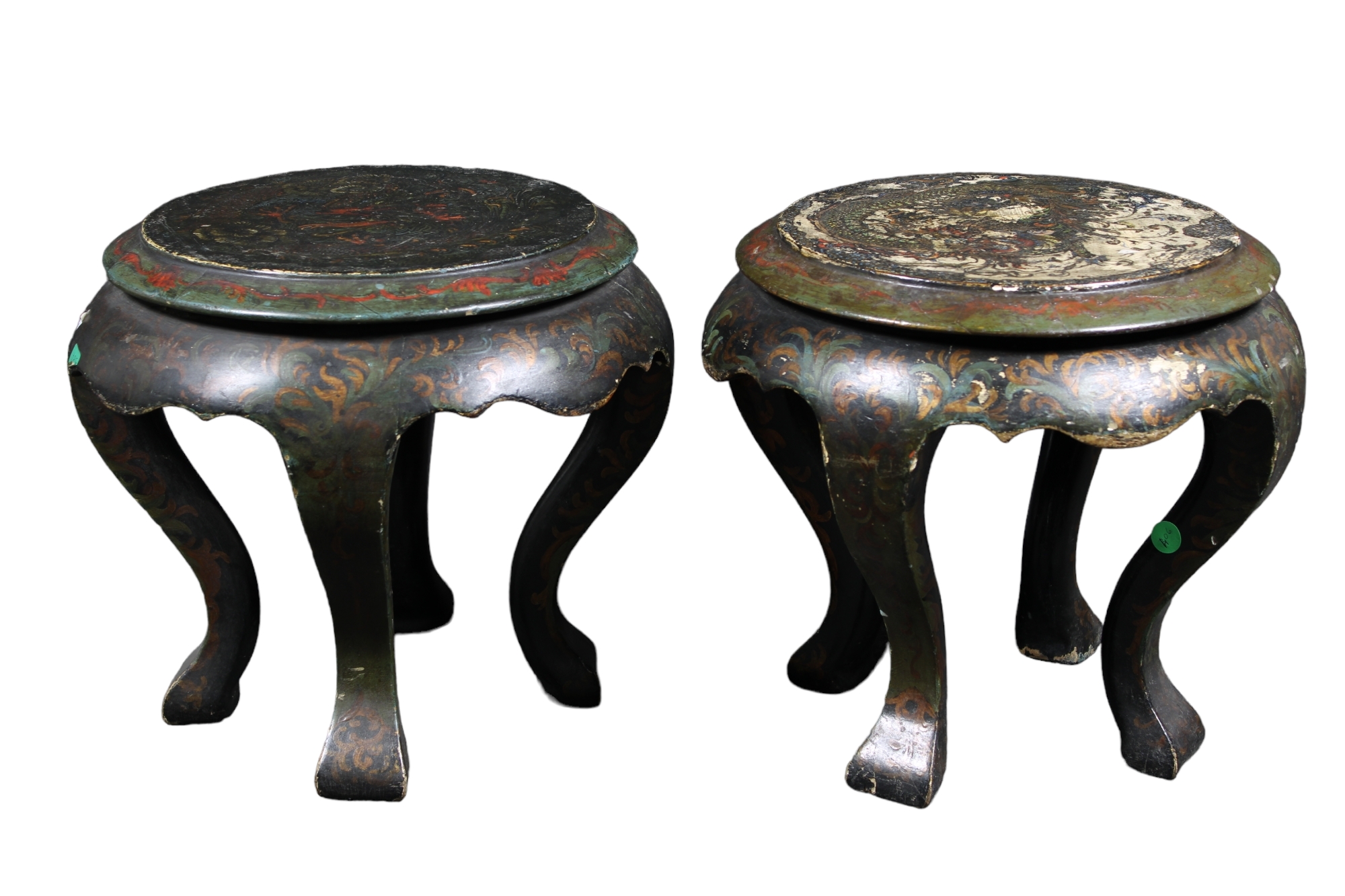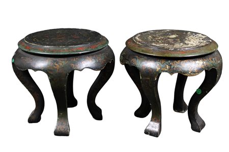 COPPIA TAVOLINI in legno laccato riccamente dipinto, sul piano motivi floreali manifattura asiatica XIX secolo h cm 35 x 40