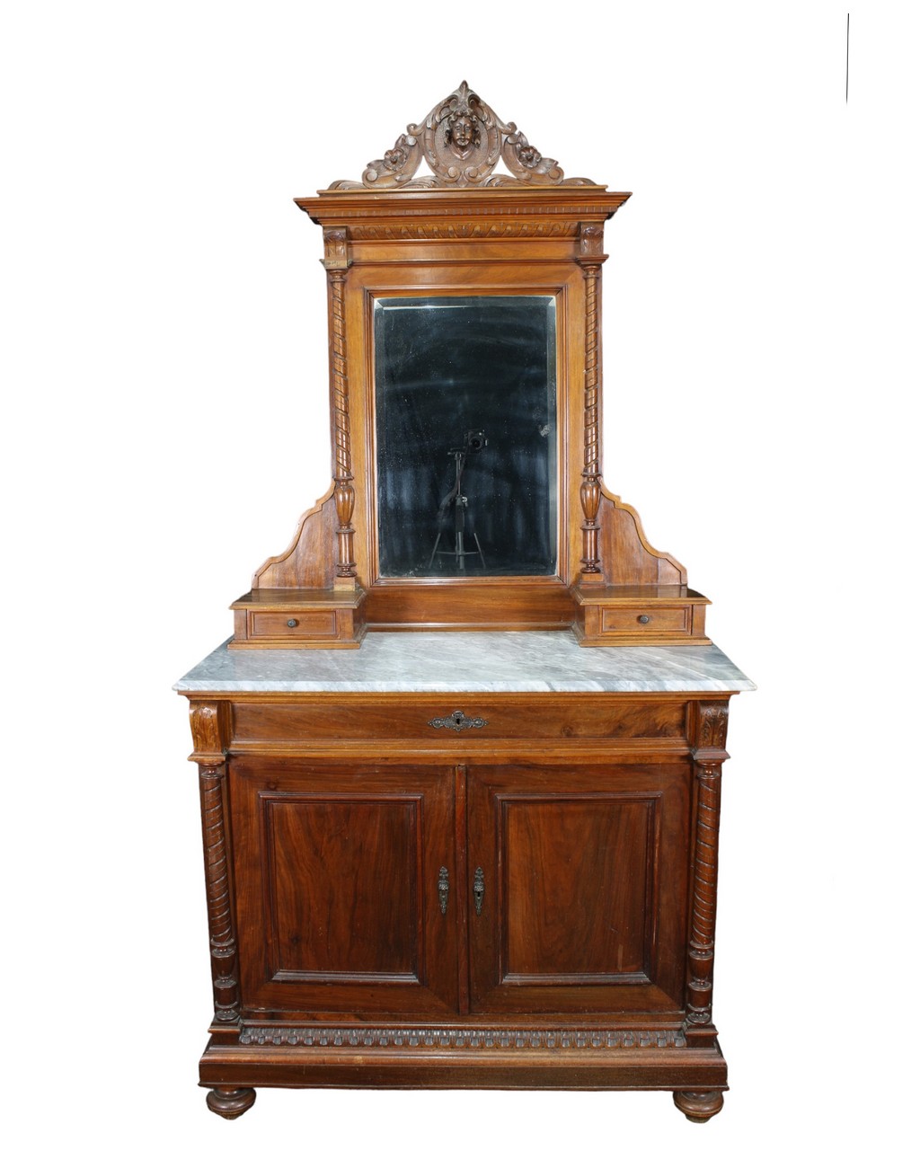 CASSETTONE in noce con specchiera e piano in marmo XIX secolo Sicilia h cm 240 x 123 x 61