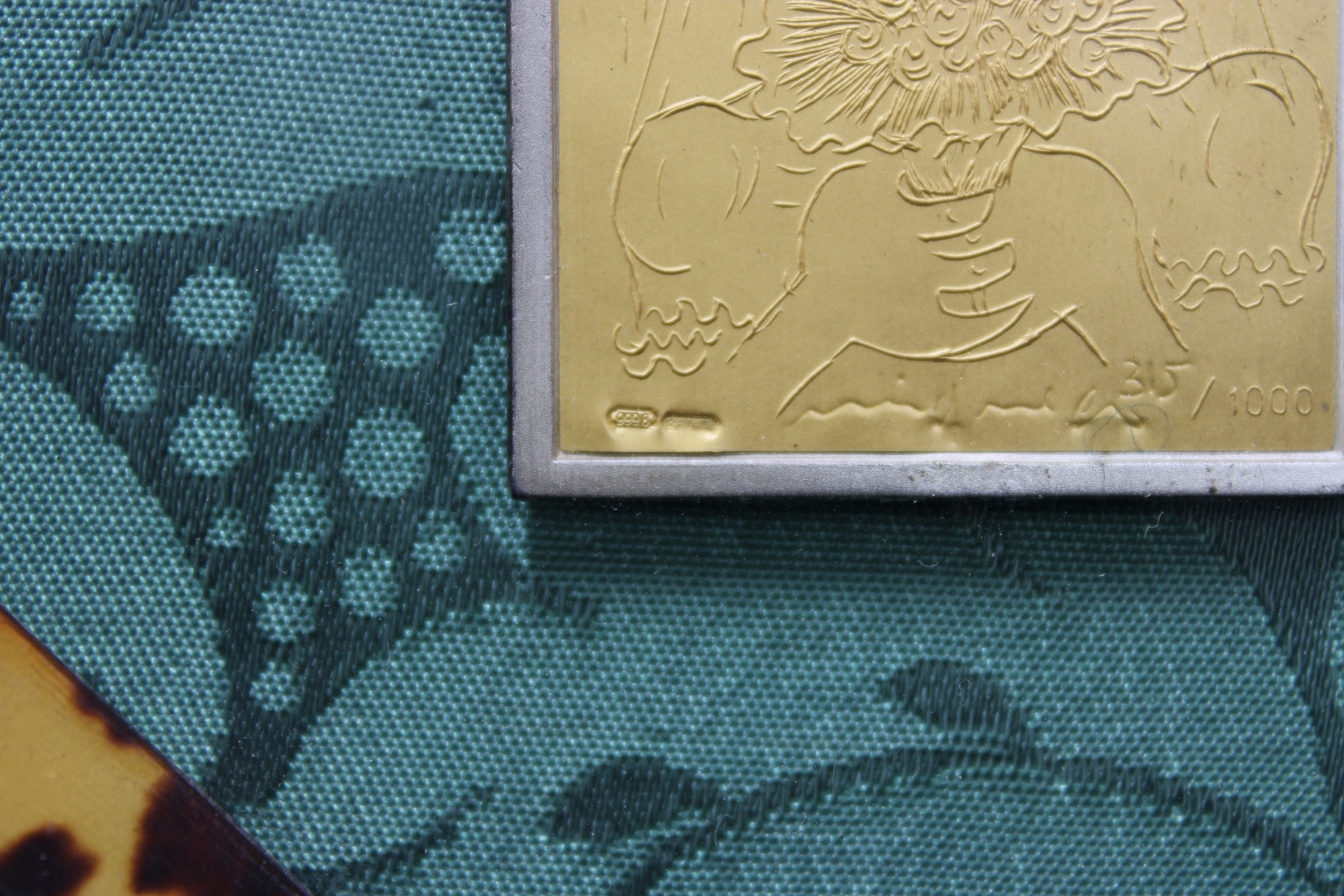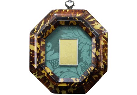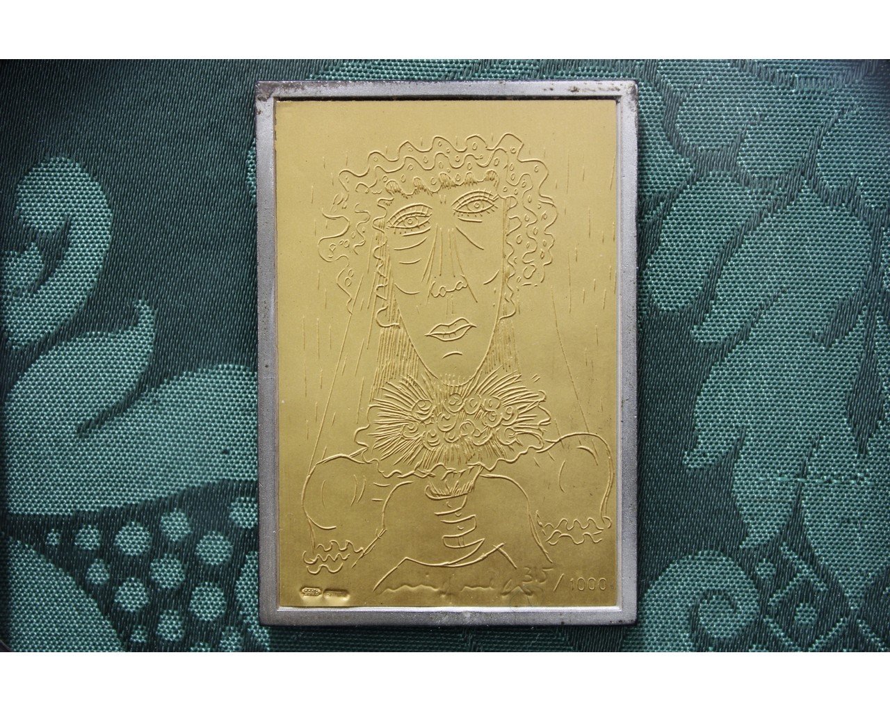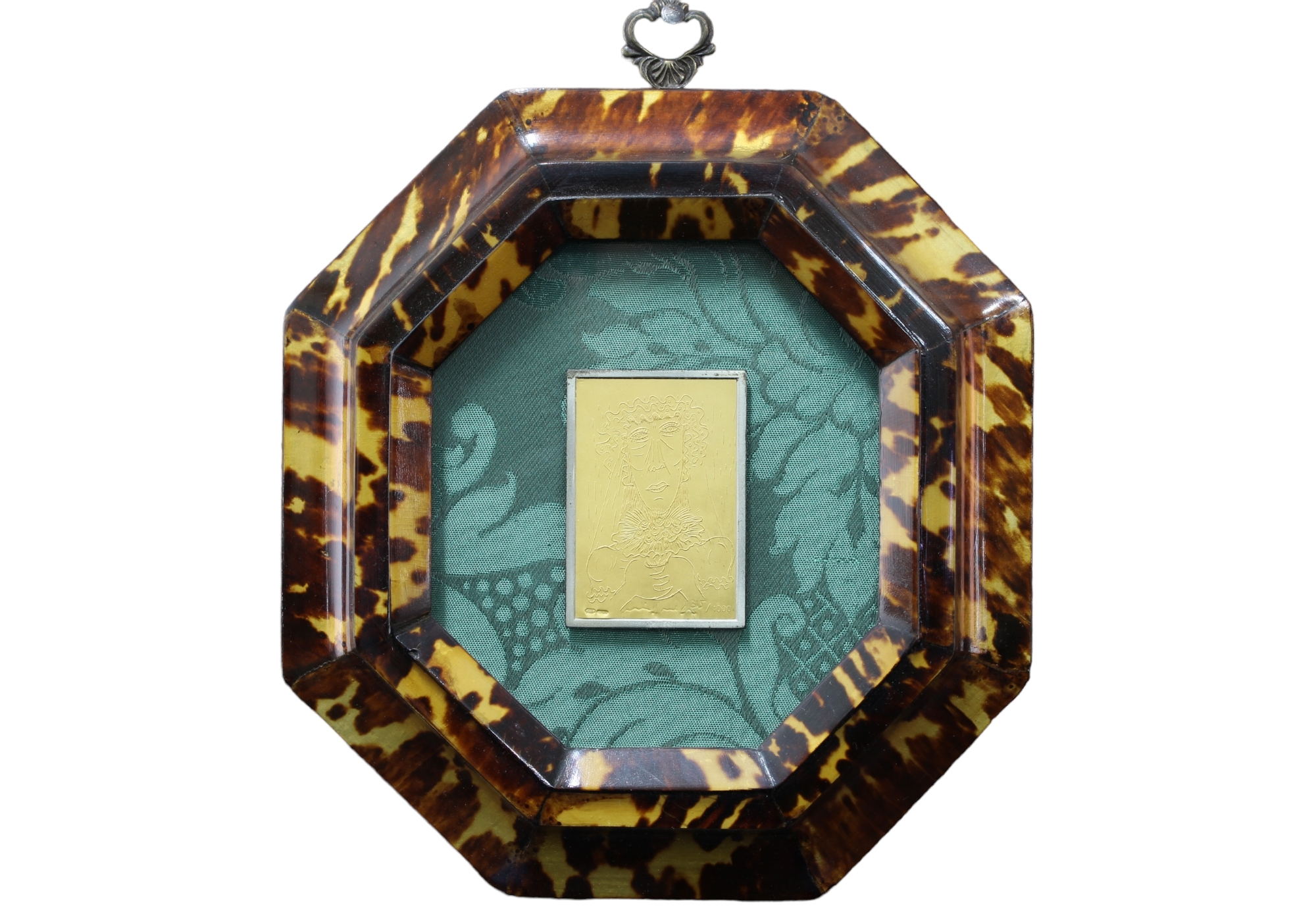 TECA in materiale pregiato con placca in argento Raffigurante Donna XX secolo Italia h cm 6.5 x 4,5 / teca h cm 20,5 x 19