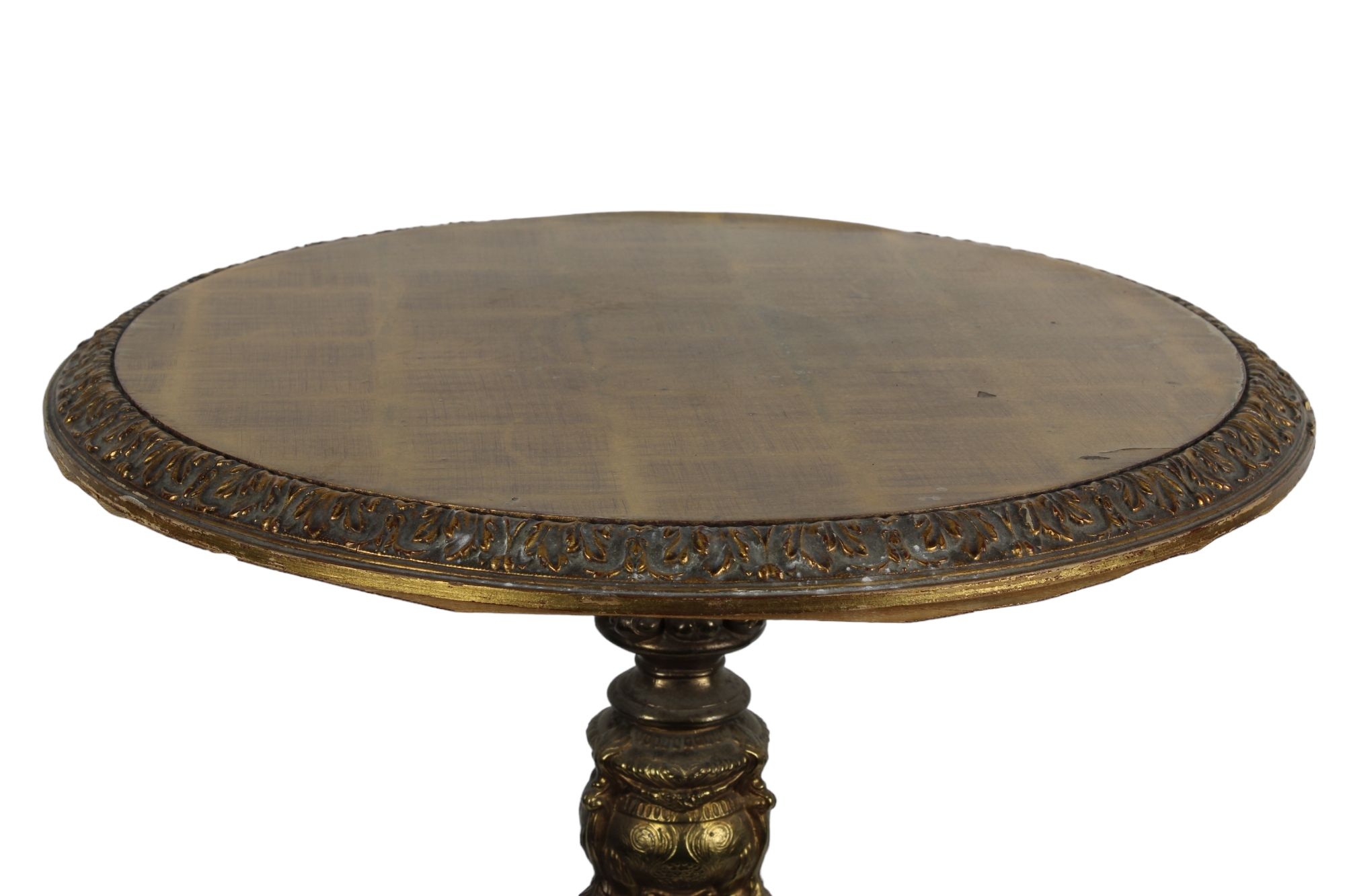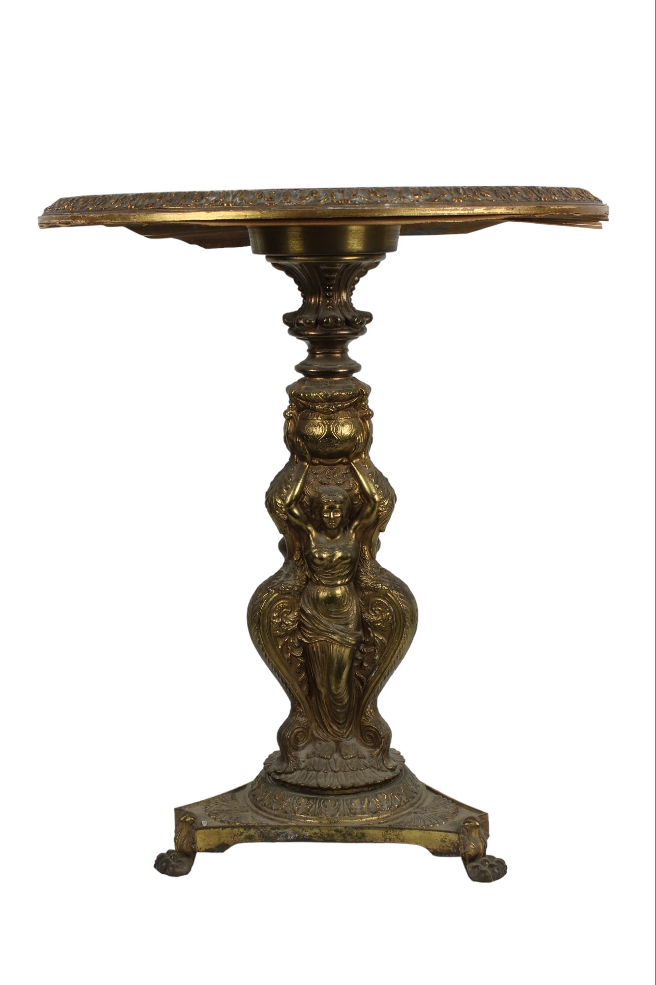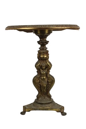 TAVOLINO DA SALOTTO in legno scolpito e pastiglia dorata, base raffigurante figure femminili maestranze italiane XX secolo h cm 61 x 50